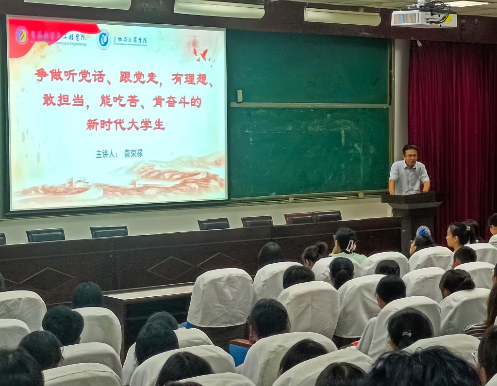 訾榮祿代表學(xué)院對全體新生的到來表示了熱烈的歡迎,向新生介紹了學(xué)校及學(xué)院近年的發(fā)展情況,殷殷教導(dǎo)2023級新生要努力成為新時代優(yōu)秀的大學(xué)生。他以中國共產(chǎn)黨近百年,特別是近十年來取得的歷史性成就、發(fā)生的歷史性變革為切入點,圍繞國際國內(nèi)社會發(fā)生的真實案例,深入淺出地讓新生們明白聽黨話、跟黨走是具體的,要體現(xiàn)在平常的一言一行上。他指出,要成為有理想、敢擔當?shù)男聲r代優(yōu)秀大學(xué)生,首先要堅定信仰、信念和信心,要主動擔當,要把自己的小我融入祖國的大我、人民的大我之中,要早思考、早規(guī)劃、早確立,并腳踏實地的去完成自己的目標。他指出,要想成為能吃苦、肯奮斗的新時代優(yōu)秀大學(xué)生,就一定要珍惜時間,用4年、7年甚至10年的時間想一件事、干一件事、成一件事,更要勇敢面對困難和挑戰(zhàn),把自己變得更加強大,要“自找苦吃”,要堅持苦干實干,搶抓機遇,奮發(fā)學(xué)習(xí),在實踐中不斷磨練自己,豐富自己,成就自己。