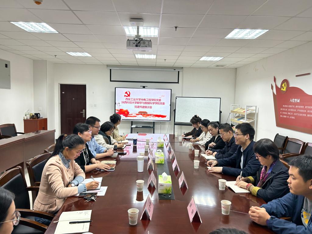 活動第一階段,西安工業(yè)大學(xué)光電工程學(xué)院黨委書記周順一行九人來數(shù)學(xué)學(xué)院進(jìn)行調(diào)研交流,數(shù)學(xué)學(xué)院黨委書記郭改慧、組織員及各黨支部書記參加了會議。