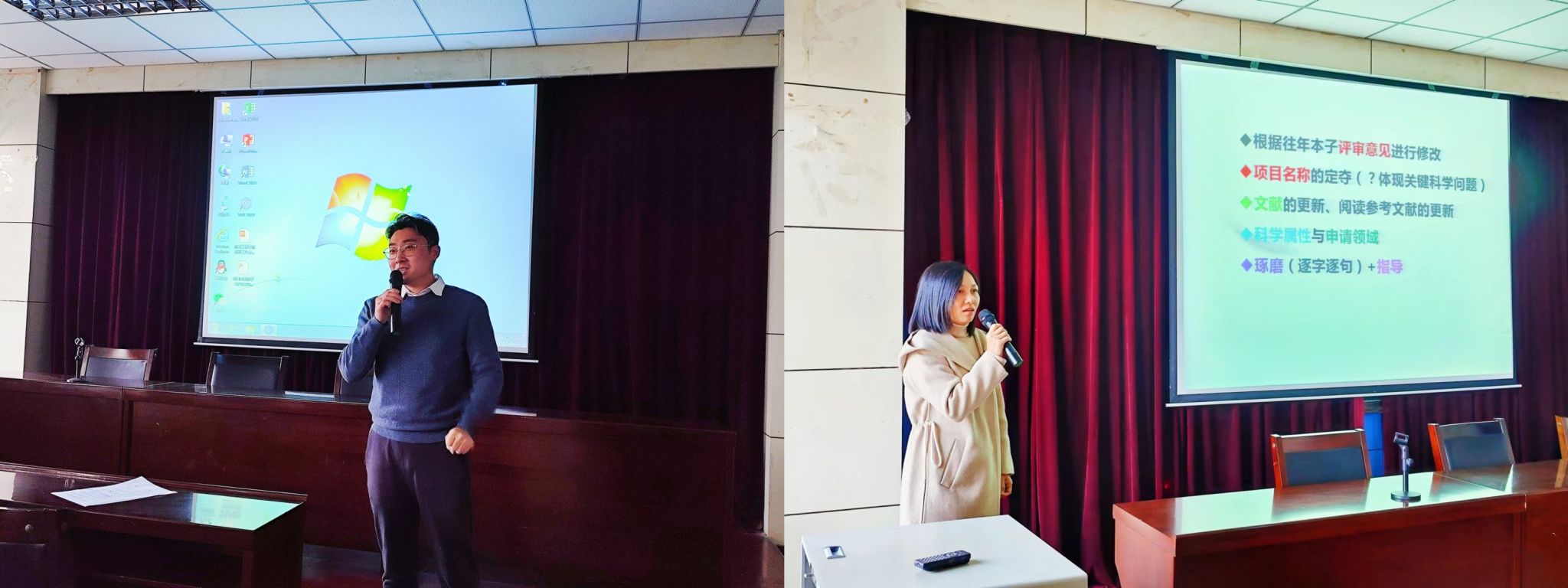最后, 2023年獲批面上項目的兩位青年教師張冬旭與婁瑞分別從加強對外交流與如何提高本子質(zhì)量兩個方面為大家分享了基金申報工作經(jīng)驗。夏祥林對會議做了總結(jié)發(fā)言,指出本次會議的成功召開,進一步統(tǒng)一了思想,明確了方向,堅定了信心,相信將為學(xué)院全面高質(zhì)量發(fā)展奠定良好的基礎(chǔ)。