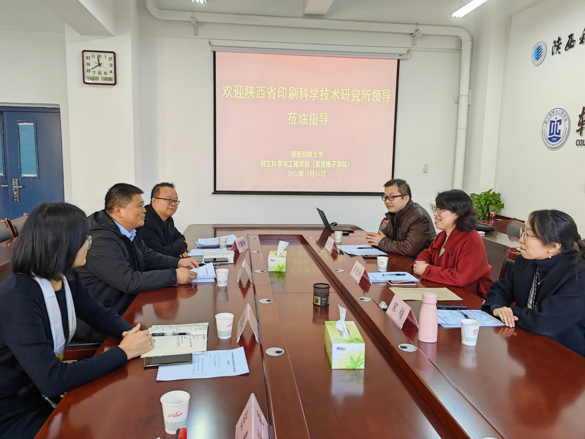 11月16日上午,陜西省印刷技術(shù)研究所有限責(zé)任公司所長李曉玲、副所長姚哲、產(chǎn)業(yè)發(fā)展中心主任宋梅一行到輕工科學(xué)與工程學(xué)院(柔性電子學(xué)院)進(jìn)行交流。輕工學(xué)院院長呂斌、副院長劉國棟、印刷工程系主任遲聰聰?shù)葏⒓幼劇h由劉國棟主持。