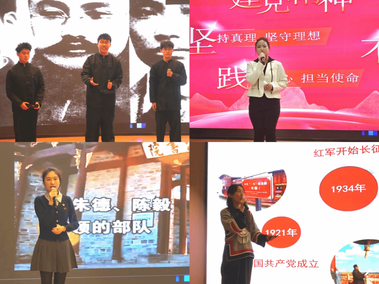 其中來(lái)自“益抹紅光宣講團(tuán)”的封柳、秦政等五名同學(xué)以“研讀紅色故事,傳承革命精神”為題,為在場(chǎng)師生深入解讀了紅船精神的內(nèi)涵,分享了偉大革命實(shí)踐產(chǎn)生的偉大革命精神?!凹t色基因·薪火傳承研究生宣講團(tuán)”的丁肖同學(xué)以“弘揚(yáng)偉大建黨精神,汲取青春奮進(jìn)力量”為題,詮釋了弘揚(yáng)偉大建黨精神的重大意義及時(shí)代價(jià)值。譚詩(shī)軒同學(xué)以“當(dāng)以?shī)^斗為底色,揮灑赤血凝筆墨”為題,帶領(lǐng)同學(xué)們感受歷史上青年如何擔(dān)當(dāng)起復(fù)興大任,明確了當(dāng)代青年如何肩負(fù)起新時(shí)代的民族脊梁。“經(jīng)”光閃耀宣講團(tuán)的念霜同學(xué)帶來(lái)題為“感悟艱辛建黨路,踐行青年新使命”的宣講,她結(jié)合自身參加研究生支教團(tuán)經(jīng)歷,帶領(lǐng)同學(xué)們回顧百年建黨之路,指出新時(shí)代青年生逢盛世,重任在肩,應(yīng)當(dāng)積極承擔(dān)社會(huì)責(zé)任,在實(shí)踐中肩負(fù)時(shí)代使命,書寫人生華章。宣講會(huì)現(xiàn)場(chǎng)氣氛熱烈,掌聲陣陣,宣講團(tuán)成員們用青言青語(yǔ)講黨的歷史、黨的創(chuàng)新理論,娓娓道來(lái),通過(guò)身邊人講身邊事抒發(fā)家國(guó)情懷,展現(xiàn)新時(shí)代科大人踔厲奮發(fā)的青春面貌和追夢(mèng)未來(lái)的使命擔(dān)當(dāng)。