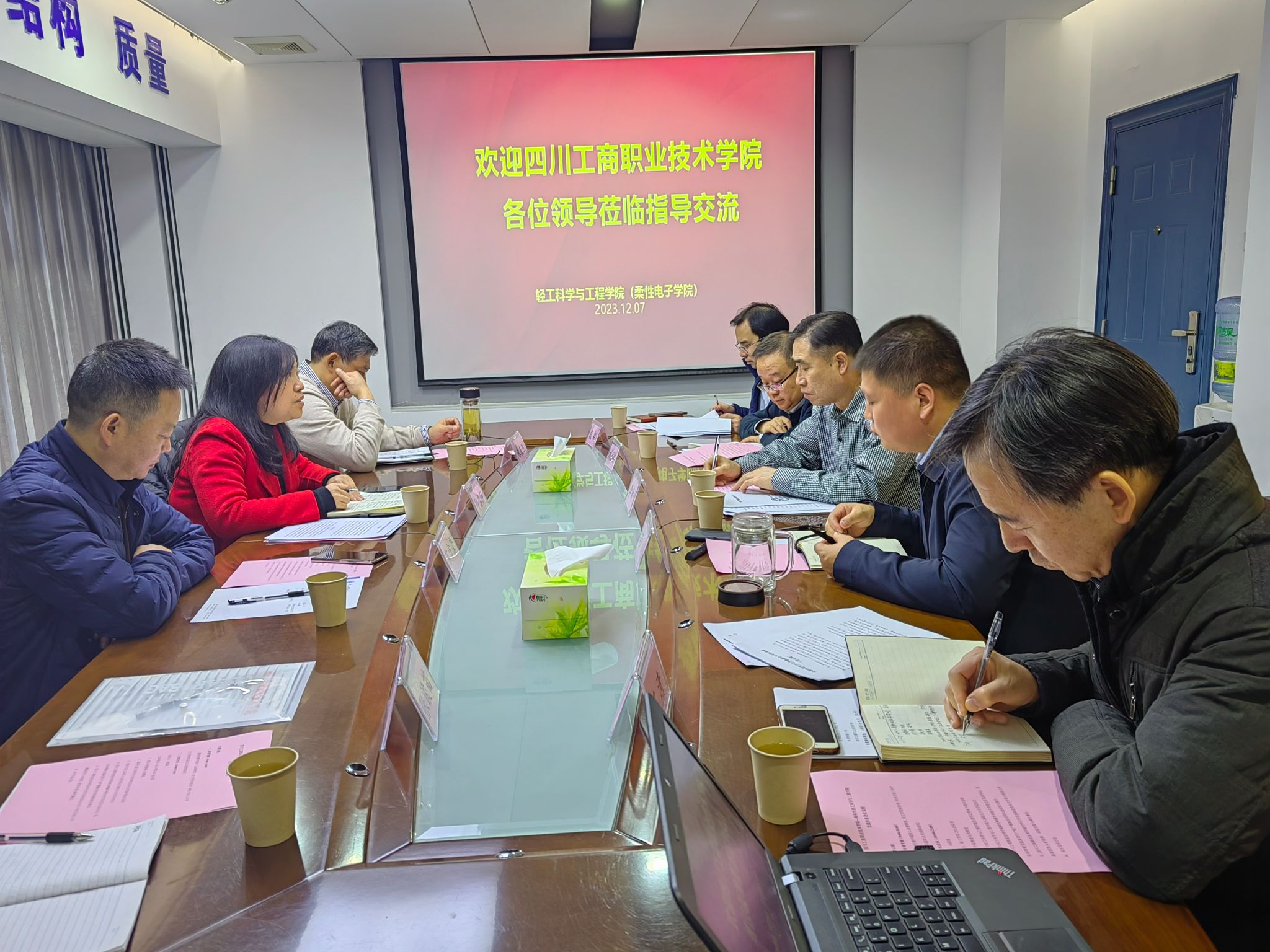 為了促進(jìn)宜賓紙業(yè)股份有限公司、陜西科技大學(xué)和四川工商職業(yè)技術(shù)學(xué)院牽頭組建的“全國(guó)新型竹產(chǎn)業(yè)產(chǎn)教融合共同體”的建設(shè)工作,加強(qiáng)校際交流與合作,12月7日,四川工商職業(yè)技術(shù)學(xué)院碳達(dá)峰碳中和技術(shù)學(xué)院院長(zhǎng)邱春麗、對(duì)外交流合作處副處長(zhǎng)宋少榮等一行4人來(lái)輕工科學(xué)與工程學(xué)院調(diào)研交流。輕工學(xué)院黨委書(shū)記李新平、院長(zhǎng)呂斌、副院長(zhǎng)劉國(guó)棟和造紙系教師代表參加會(huì)議。會(huì)議由劉國(guó)棟主持。
