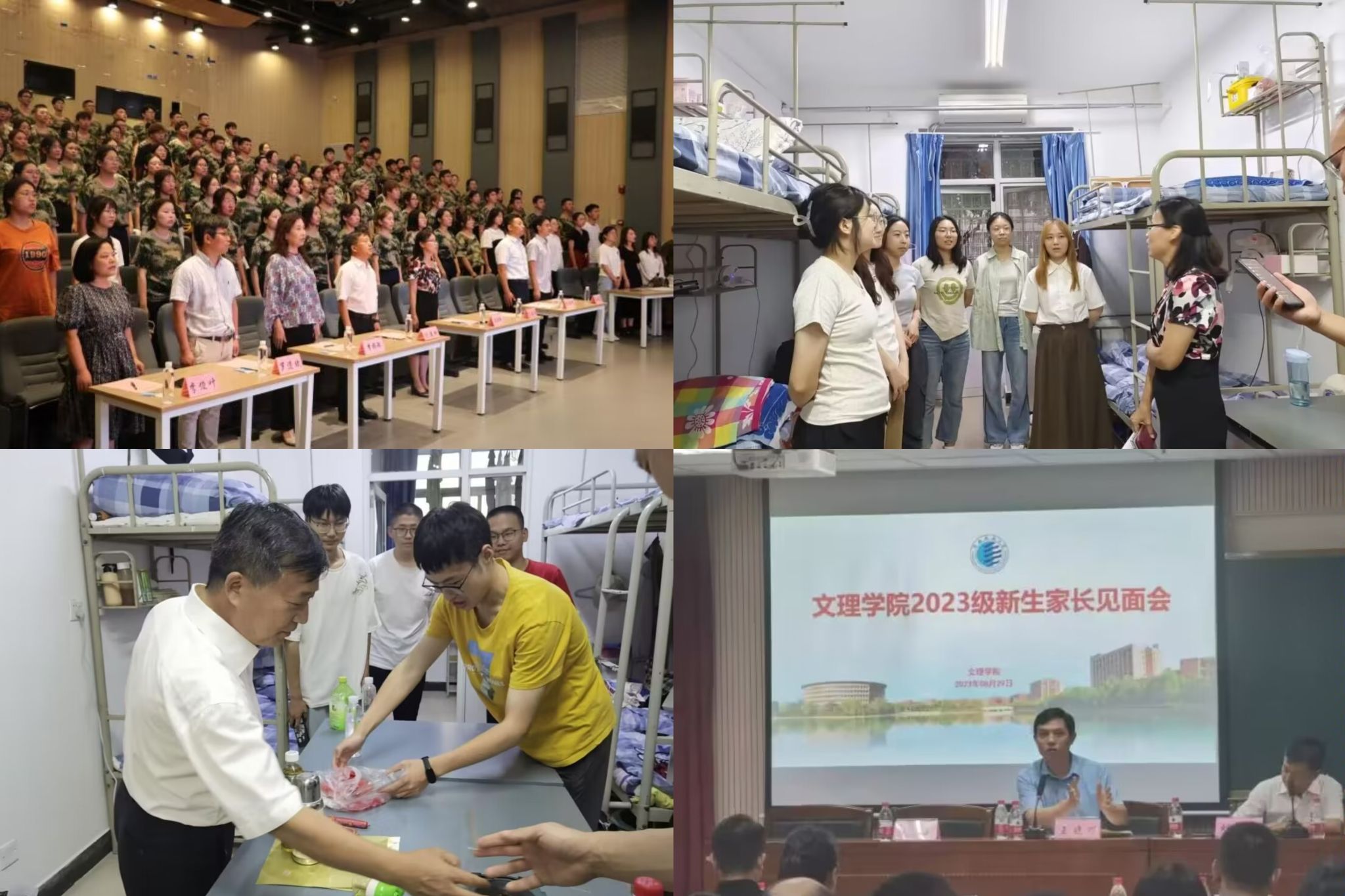 為幫助新生盡快適應(yīng)大學(xué)生活,多渠道了解新生活,融入新環(huán)境,適應(yīng)新角色,開學(xué)第一天,學(xué)院院長劉建科作了題為《歡迎新同學(xué)》主題報(bào)告,他詳細(xì)介紹了學(xué)校的發(fā)展歷史,通過解讀如何讀大學(xué)啟發(fā)同學(xué)們進(jìn)行積極地自我探索,自我發(fā)展。學(xué)院領(lǐng)導(dǎo)班子帶隊(duì)走訪新生宿舍,進(jìn)一步了解同學(xué)們的宿舍生活情況并希望同學(xué)們能盡快適應(yīng)新環(huán)境,融入大學(xué)生活。為了讓家長對學(xué)院工作和孩子的未來發(fā)展更明晰,學(xué)院召開新生家長見面會,與家長們面對面交流學(xué)校的專業(yè)發(fā)展、人才培養(yǎng)、考研就業(yè)等話題,加強(qiáng)了家校之間的密切聯(lián)系,助力新生全面健康發(fā)展。