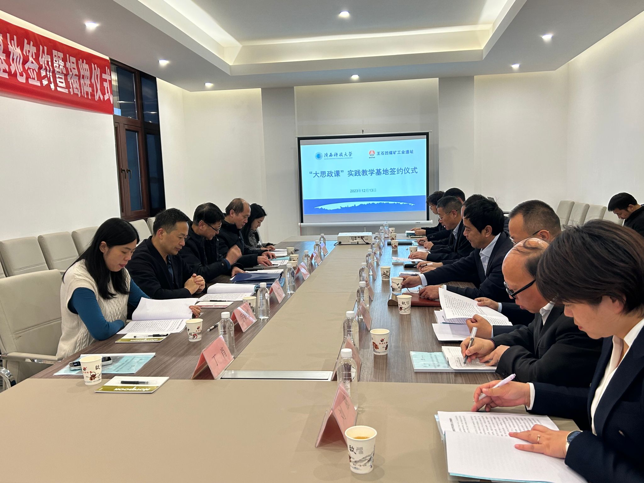 為深入貫徹落實習(xí)近平總書記關(guān)于“大思政課”建設(shè)的重要指示批示精神,加快構(gòu)建“大思政課”工作格局,12月13日,馬克思主義學(xué)院與王石凹煤礦工業(yè)旅游開發(fā)有限公司,舉行共建王石凹煤礦工業(yè)遺址“大思政課”實踐教學(xué)基地簽約暨揭牌儀式。銅川市印臺區(qū)政府副區(qū)長劉環(huán),王石凹煤礦工業(yè)旅游開發(fā)有限公司董事長王鵬、財務(wù)總監(jiān)余同保、副總經(jīng)理黃洪亮、綜合管理部部長鄭養(yǎng)平,我校馬院黨委書記劉根良、副院長阮云志,教研部主任岳婷婷、王飛以及部分學(xué)生代表,參加共建活動。簽約暨揭牌儀式由王鵬主持。