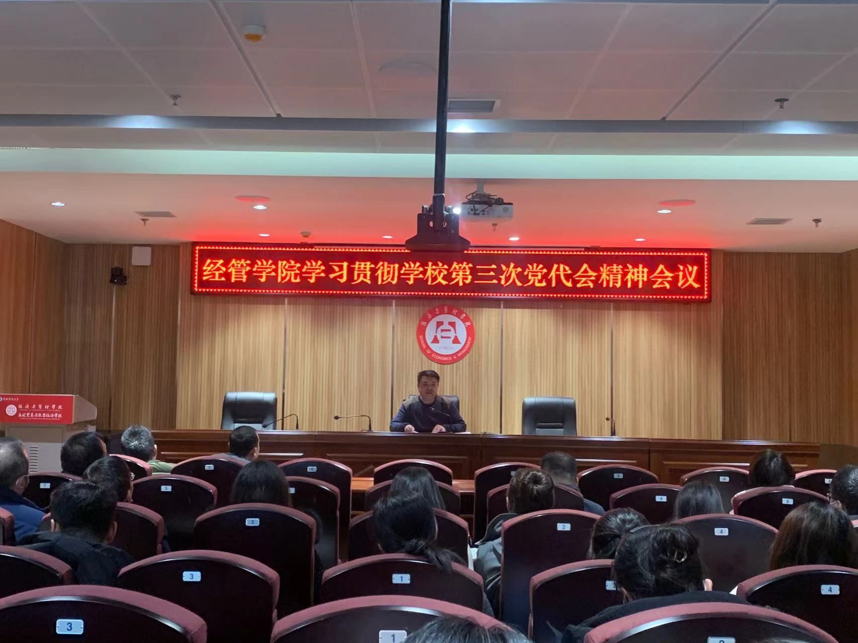 1月12日上午,經(jīng)濟(jì)與管理學(xué)院(亞歐貿(mào)易與數(shù)字經(jīng)濟(jì)學(xué)院)在人文樓A712會(huì)議室召開(kāi)全體會(huì)議,傳達(dá)學(xué)習(xí)學(xué)校第三次黨代會(huì)精神。會(huì)議由學(xué)院黨委書(shū)記崔楠主持,全體教工參加學(xué)習(xí)。