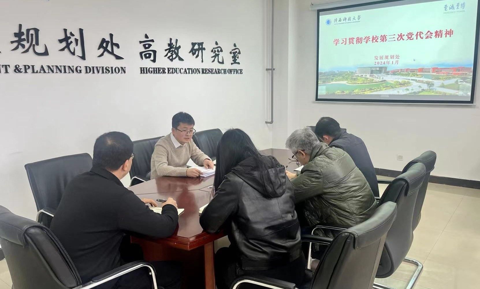 1月18日上午,發(fā)展規(guī)劃處黨支部召開(kāi)黨員大會(huì),傳達(dá)學(xué)習(xí)學(xué)校第三次黨代會(huì)精神。會(huì)議由黨支部書(shū)記龐博主持。