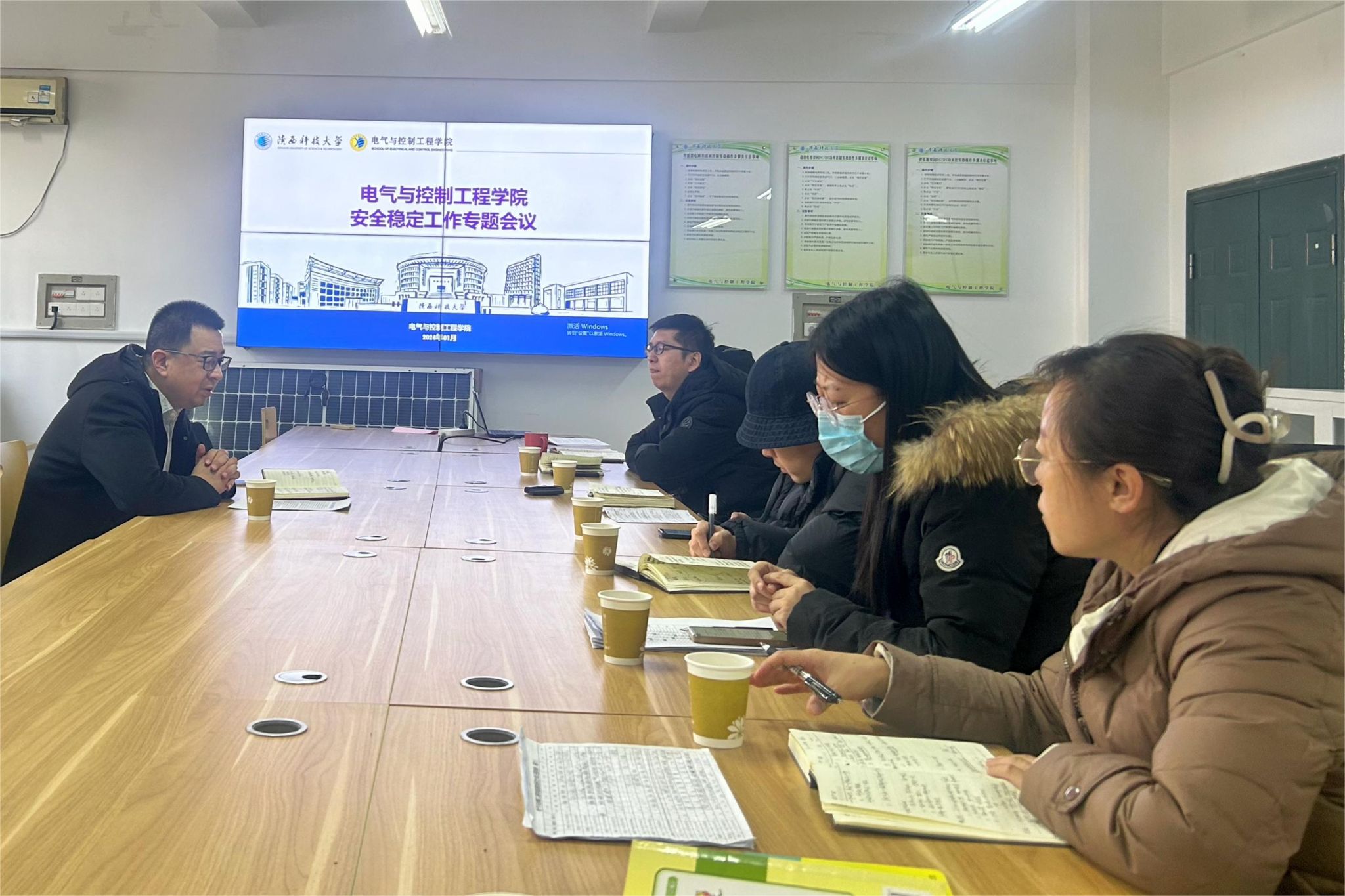1月27日下午,電氣與控制工程學(xué)院在實(shí)驗(yàn)樓2A404召開學(xué)院安全穩(wěn)定工作專題會(huì)議,傳達(dá)全省教育系統(tǒng)及學(xué)校安全穩(wěn)定工作會(huì)議精神,并就做好近期學(xué)院安全穩(wěn)定工作進(jìn)行安排部署。會(huì)議由學(xué)院黨委書記喬明哲主持,學(xué)院班子成員、學(xué)院分紀(jì)委、辦公室、實(shí)驗(yàn)室負(fù)責(zé)人及學(xué)生工作輔導(dǎo)員參加會(huì)議。