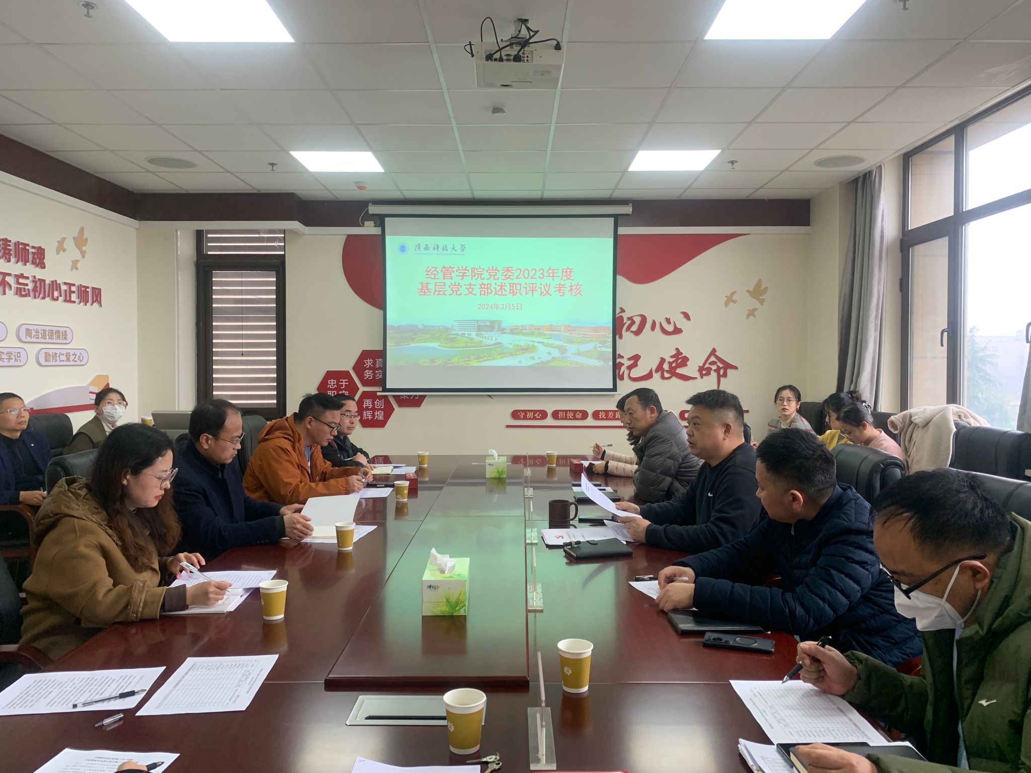 會(huì)上,崔楠傳達(dá)了陜西科技大學(xué)2023年度基層黨建工作述職評(píng)議考核會(huì)議情況。各基層黨支部根據(jù)我院2023年度黨支部考核工作要求,圍繞“七個(gè)有力”落實(shí)情況,緊扣黨建工作要點(diǎn),結(jié)合黨建工作與教學(xué)、科研、人才培養(yǎng)、服務(wù)地方經(jīng)濟(jì)等方面深度融合情況對(duì)2023年工作進(jìn)行了全面匯報(bào),分析了目前存在的問(wèn)題,提出了下一步整改措施。