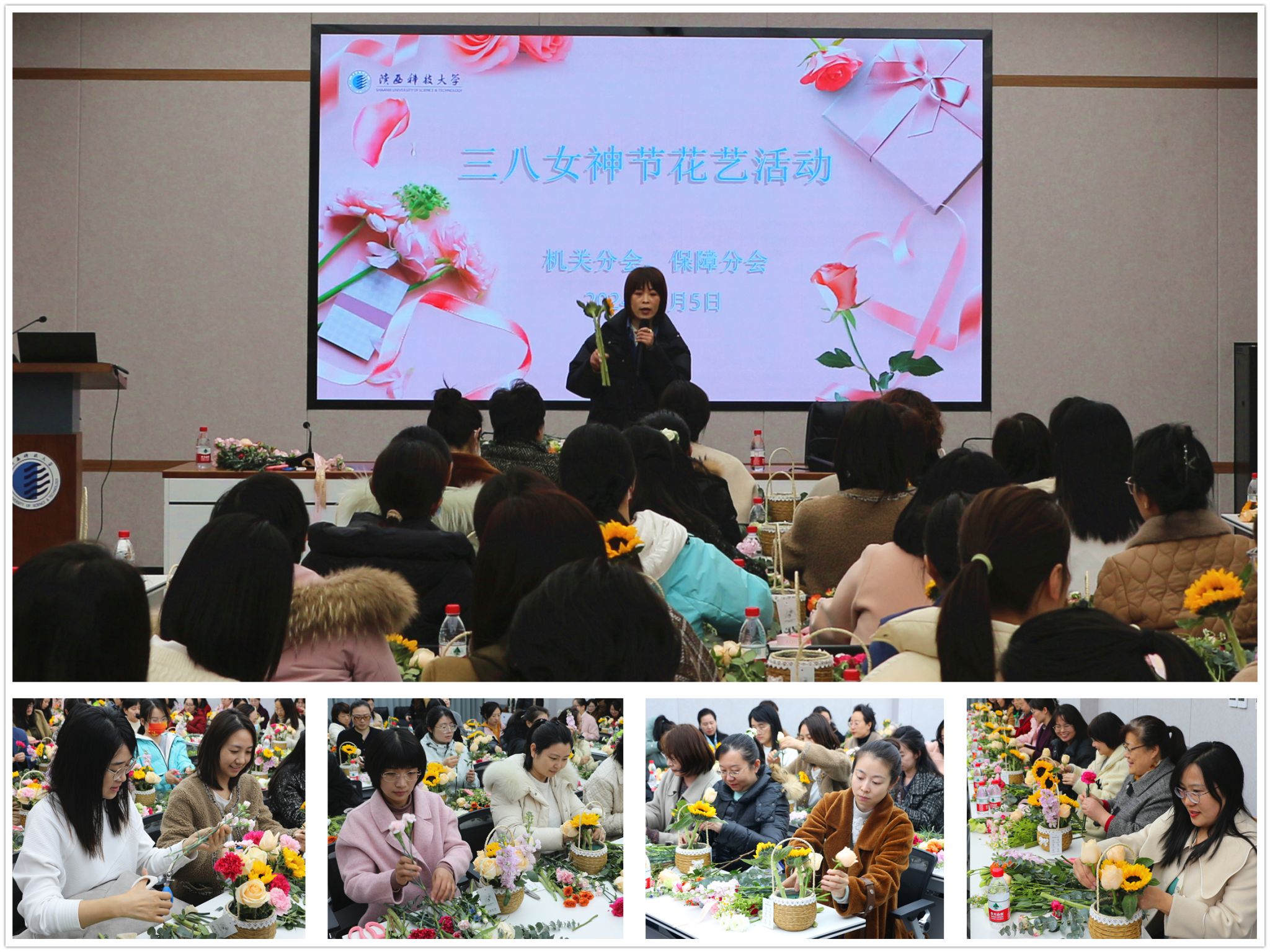 在“三八”國際勞動?jì)D女節(jié)來臨之際,機(jī)關(guān)分會和保障分會于3月5日下午聯(lián)合舉辦“三八”女神節(jié)花藝活動。機(jī)關(guān)、保障近百名女教工歡聚一堂,在高級花藝師韓萍萍老師的指導(dǎo)下,插花游藝,共度歡樂時(shí)光。