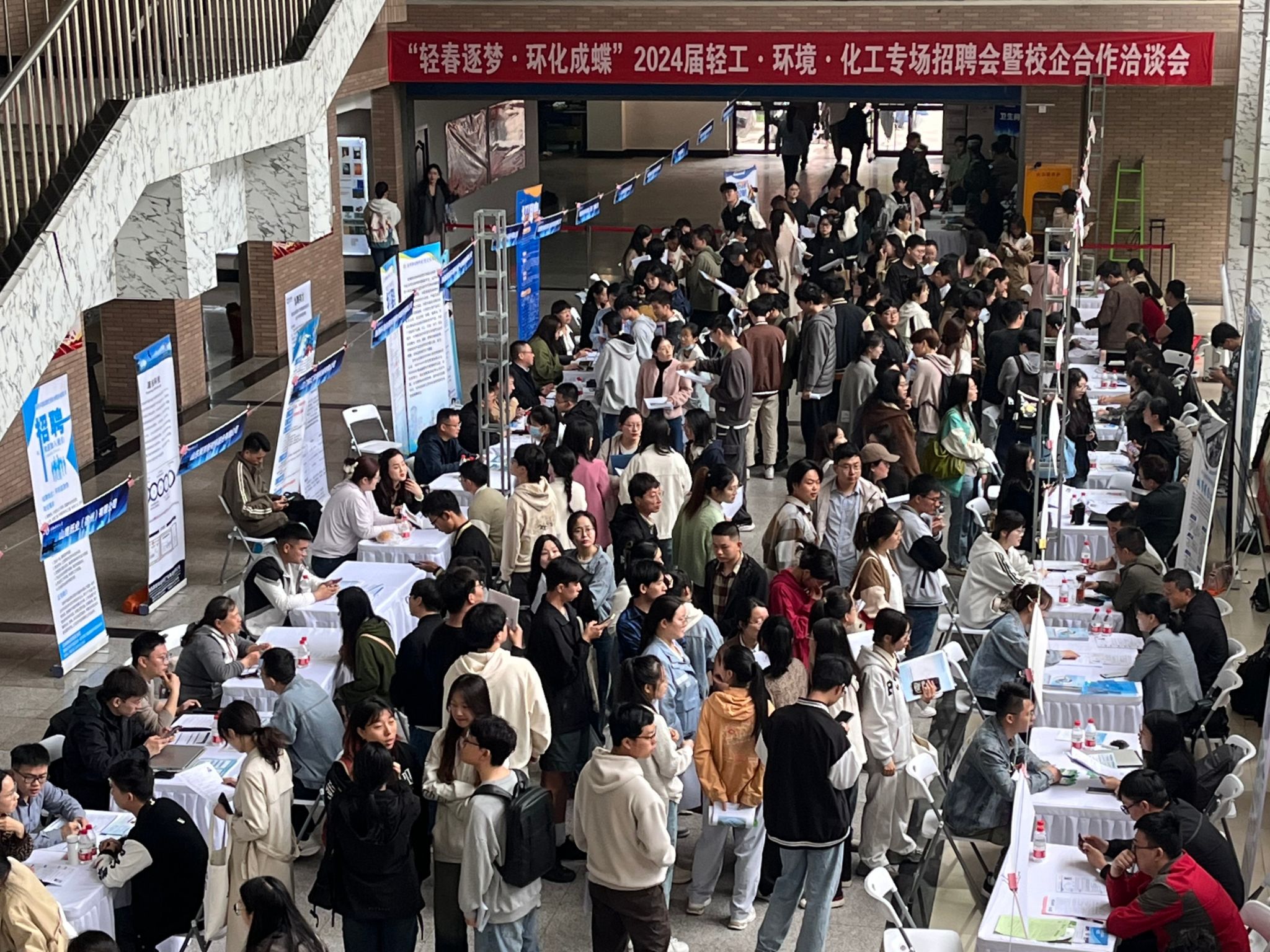 為拓寬就業(yè)渠道,持續(xù)精準推進2024屆畢業(yè)生高質(zhì)量就業(yè),輕工科學(xué)與工程學(xué)院(柔性電子學(xué)院)、環(huán)境科學(xué)與工程學(xué)院(碳中和科學(xué)與技術(shù)學(xué)院)、化學(xué)與化工學(xué)院于4月2日在實驗樓1B一樓大廳聯(lián)合舉辦“輕春逐夢·環(huán)化成蝶”2024屆輕工?環(huán)境?化工專場招聘暨校企合作洽談會。