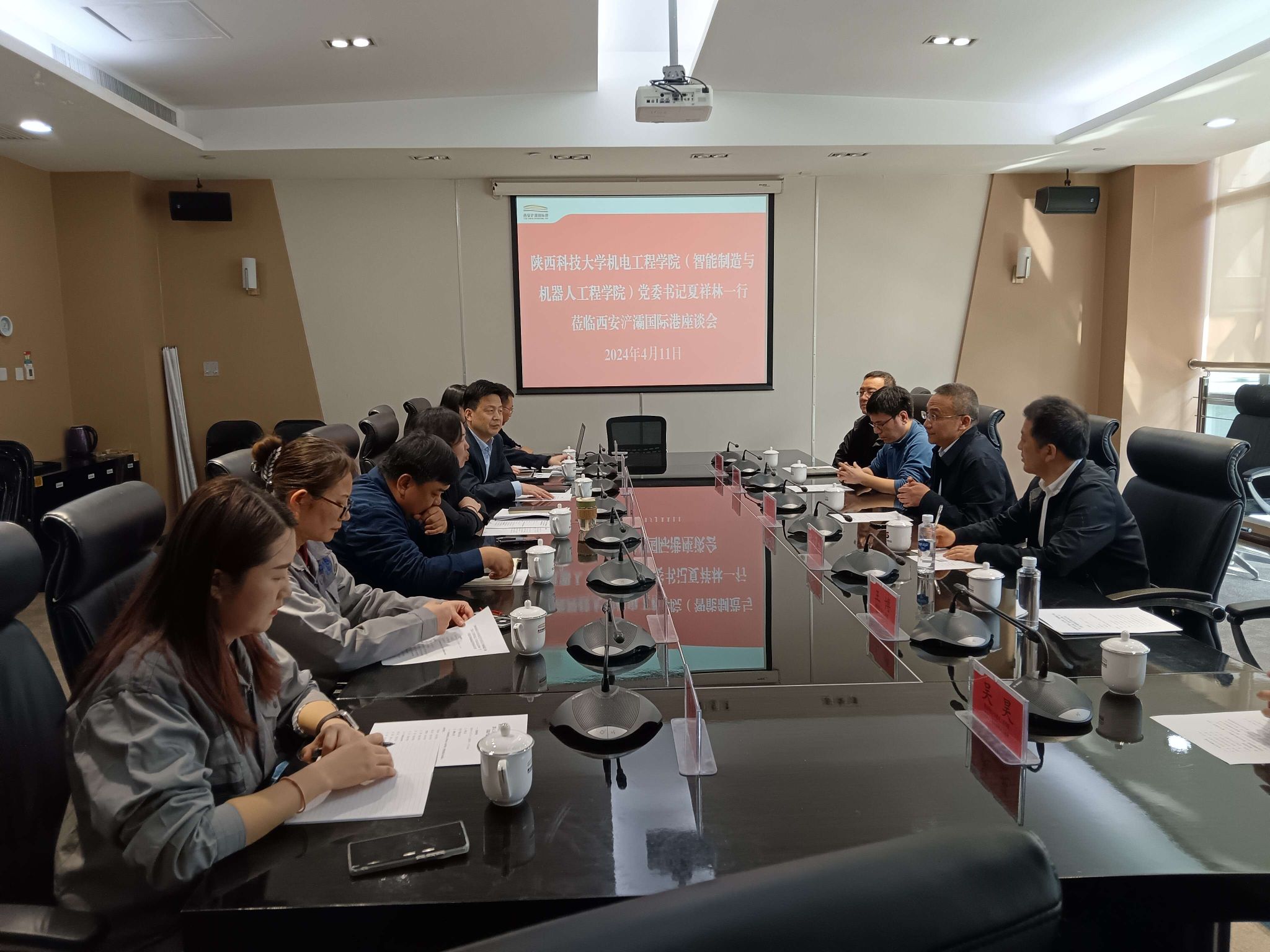 三方在浐灞國際港務(wù)區(qū)管委會進(jìn)行了座談交流。張琳、王凱介紹了西安浐灞國際港投資與營商環(huán)境、制造和科技型企業(yè)落地情況。夏祥林表示,浐灞國際港務(wù)區(qū)發(fā)展理念和勢頭讓人印象深刻,不僅在中歐班列和保稅經(jīng)濟(jì)方面發(fā)揮了內(nèi)陸港優(yōu)勢,而且制造業(yè)的布局也頗具前瞻性。轄區(qū)的企業(yè)在多個版塊與機(jī)電學(xué)院的專業(yè)方向比較契合、互補(bǔ)性明顯。楊立軍介紹了我?!叭齽?chuàng)兩遷”發(fā)展歷程、特色亮點(diǎn)和服務(wù)地方經(jīng)濟(jì)的良好態(tài)勢,講解了機(jī)電學(xué)院的學(xué)科專業(yè)及科研情況,表示機(jī)電學(xué)院具有機(jī)械工程一級博士點(diǎn)、動力工程與工程熱物理以及即將招生的智能科學(xué)與技術(shù)一級碩士學(xué)科,擁有智能裝備與控制、智能制造與微機(jī)電系統(tǒng)、摩擦學(xué)與表面工程、醫(yī)工結(jié)合生物材料制造、新能源等研究方向,與企業(yè)合作發(fā)展前景廣闊。趙江民介紹了西安達(dá)升科技股份有限公司創(chuàng)業(yè)發(fā)展歷史,聚焦工業(yè)機(jī)器人領(lǐng)域,通過為制造業(yè)提供智能化解決方案取得了不俗業(yè)績,希望與機(jī)電學(xué)院達(dá)成合作,共建研究生聯(lián)合培養(yǎng)基地、聯(lián)建實驗室和大學(xué)生實習(xí)基地。