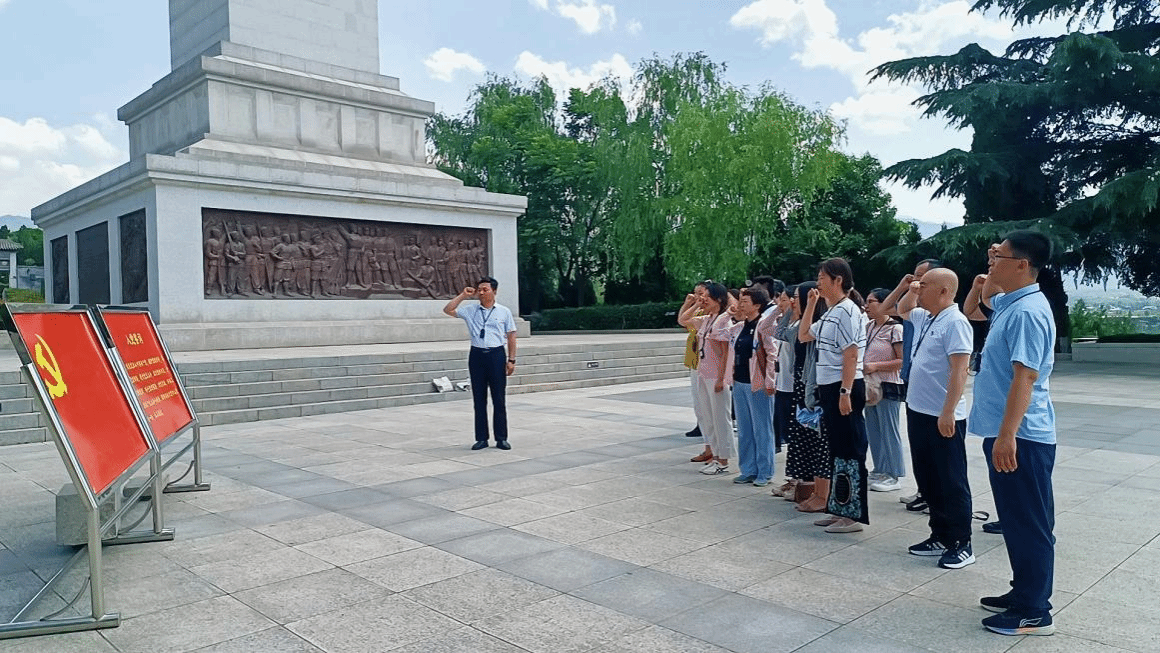 在渭華起義紀念館黨員們先后參觀了渭華起義指揮部舊址、陳列大廳、中心廣場和烈士紀念碑。渭華起義是中國共產(chǎn)黨領導的武裝起義之一,有著光榮的歷史和豐功偉績,這里真實再現(xiàn)了當時革命斗爭的艱苦歲月。一件件實物、一張張照片,帶領黨員們回顧了革命先烈們?yōu)榱嗣褡濯毩⒑腿嗣裥腋6鴬^斗的壯麗歷程。參觀結束后,全體黨員重溫入黨誓詞,面向黨旗莊嚴宣誓。