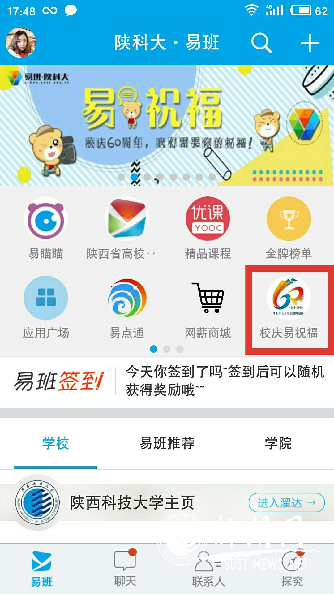 逐步推進宣傳工作,不忘初心獻禮校慶。校易班制作的來自全國60所高校易班的祝福、校友送祝福等視頻將以動態(tài)的視角,為我們展現(xiàn)來自校內(nèi)外多維度的校慶氛圍。