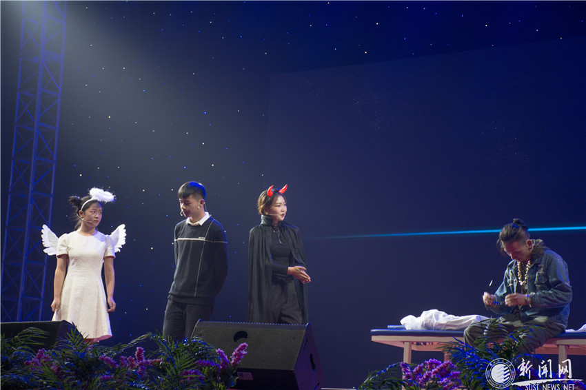 晚會在一支活力十足的開場街舞秀中拉開了序幕,整齊劃一、韻律十足的舞步,正是青春活力的最好縮影;學(xué)生會藝術(shù)團(tuán)用輕松愉悅的小合唱《小山和小島》唱出了莘莘學(xué)子難忘的青蔥歲月;古典舞《粉墨》以精彩的編排、曼妙的身姿帶領(lǐng)大家領(lǐng)略了墨梅“不要人夸顏色好,只留清氣滿乾坤”的清新高潔;相聲《我們的大學(xué)時(shí)代》以大學(xué)生活中的點(diǎn)點(diǎn)滴滴,生動活潑的詮釋了“大學(xué)生要堅(jiān)定理想信念,勤奮求知,努力成長為德才兼?zhèn)洹⑷姘l(fā)展的棟梁之材”的人生目標(biāo);由我校學(xué)生處公寓管理中心帶來的韻律球操《微笑》中,公寓管理員阿姨們穿上動感的運(yùn)動服飾,燦爛的笑容合著明快的節(jié)奏,樂聲鼓聲與舞步應(yīng)答,向現(xiàn)場觀眾們傳遞了敬業(yè)、友善的社會主義核心價(jià)值觀;美輪美奐的舞蹈、令人捧腹的小品、優(yōu)雅華美的服裝秀、悅耳動聽的歌曲、新疆少數(shù)民族學(xué)生的舞蹈、引人入勝的魔術(shù)、活力十足的啦啦操、英姿颯爽的武術(shù),以及拉丁舞隊(duì)絢麗的群舞等皆彰顯了我校學(xué)生的才藝與激情,贏得了觀眾們一陣陣熱烈的掌聲。整場晚會最令現(xiàn)場師生難忘的是詩朗誦《迎風(fēng)的翅膀》,講述了我校研究生支教團(tuán)平凡、質(zhì)樸的支教生活,一張張鮮活的笑臉、一幅幅感人的畫面,一屆屆研支團(tuán)成員接力奉獻(xiàn),為山區(qū)里的孩子托起了希望的羽翼,用承諾與擔(dān)當(dāng)踐行他們的青春誓言:“用一年不長的時(shí)間,做一件終生難忘的事情”,將整場晚會推向高潮。