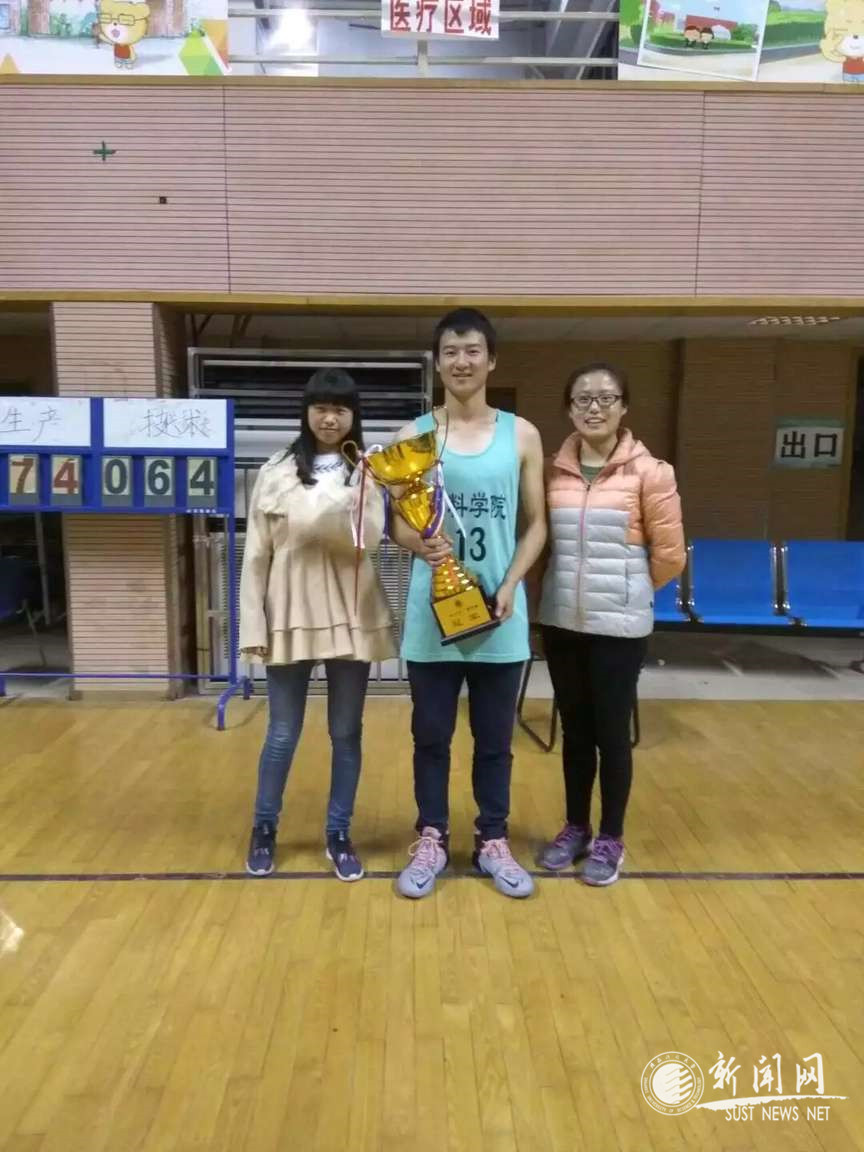 PM7:00,文體館。機(jī)電學(xué)院和材料學(xué)院的“科大杯”籃球杯決賽正式開始,他作為材料籃球隊(duì)的一員代表材料學(xué)院出戰(zhàn),為學(xué)院贏得了科大籃球杯冠軍。