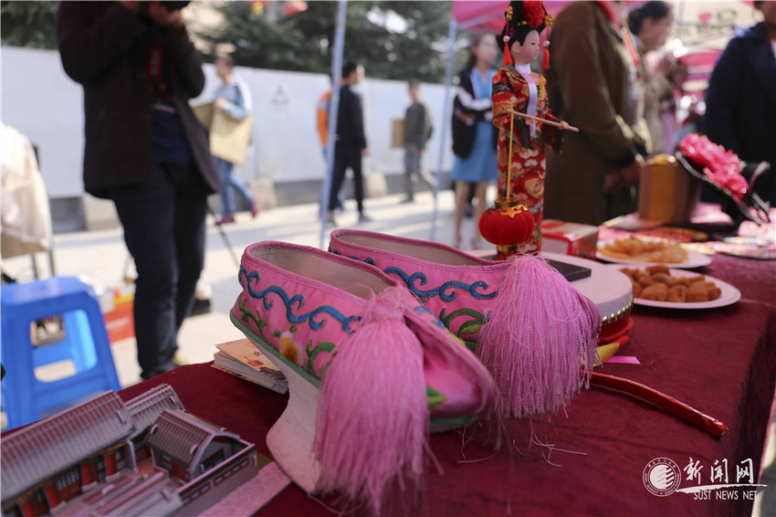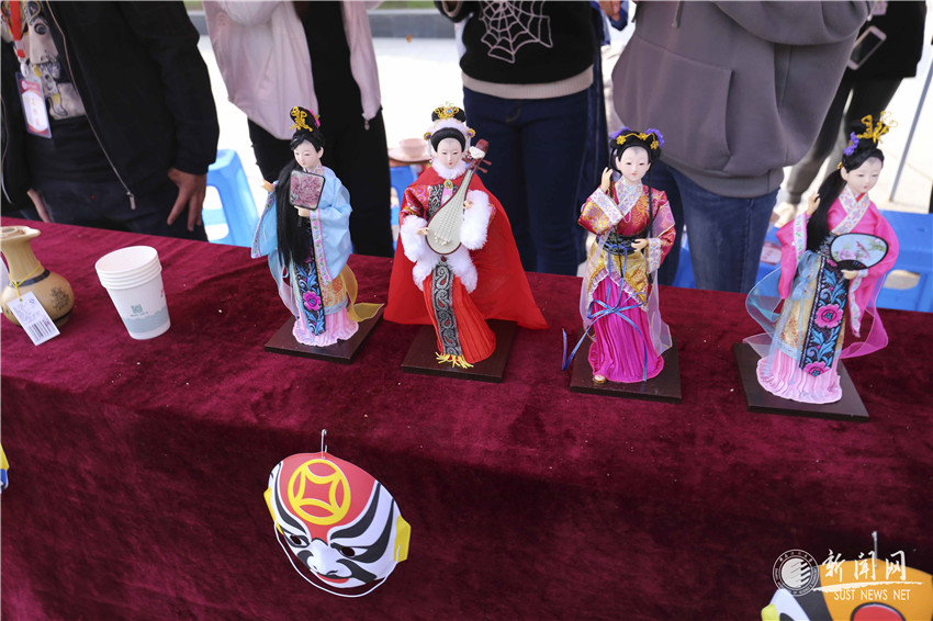 最后停在漢族的展桌前,月餅、水餃等食物自是不用多說(shuō),桌上擺放的四大美人玩偶和皮影、竹簡(jiǎn)模型,真是漢族十分具有代表性的物品。