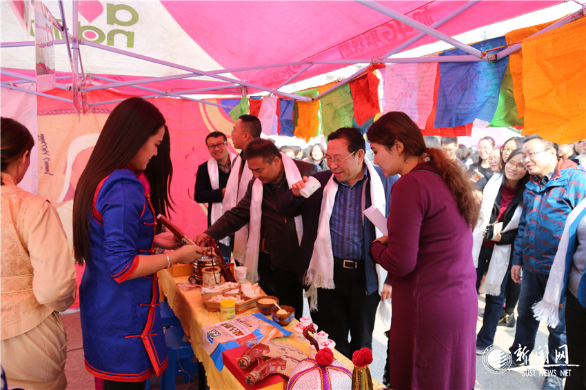 11點(diǎn)50分,身著不同民族服飾的民族模特隊(duì)從教學(xué)區(qū)校訓(xùn)石出發(fā),沿路展示民族服飾,抵達(dá)沁園廣場(chǎng)。隨即沁園廣場(chǎng)響起激昂的音樂(lè),宣告著民族文化節(jié)活動(dòng)正式開(kāi)始。校長(zhǎng)姚書(shū)志,校黨委副書(shū)記溫鋒、楊欲曉來(lái)到各民族展區(qū)親切看望了各民族學(xué)生,與同學(xué)們親切交談,認(rèn)真聽(tīng)取各民族學(xué)生對(duì)于本民族歷史特色文化的介紹,詳細(xì)詢問(wèn)他們?cè)谛5膶W(xué)習(xí)生活情況。蒙古族學(xué)生代表我校少數(shù)民族同學(xué)向各位領(lǐng)導(dǎo)和老師敬獻(xiàn)了哈達(dá),表達(dá)了對(duì)學(xué)校悉心培養(yǎng)和無(wú)微不至關(guān)懷的深深謝意,祝愿學(xué)校的明天更加美好。