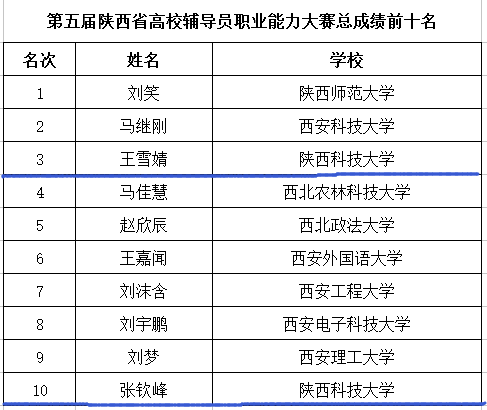 3月30日至3月31日,陜西省第五屆高校輔導(dǎo)員職業(yè)能力大賽在西北大學(xué)舉行,來(lái)自全省94所高校(含獨(dú)立學(xué)院)的130名輔導(dǎo)員參加了比賽。我校設(shè)計(jì)與藝術(shù)學(xué)院輔導(dǎo)員王雪婧、經(jīng)濟(jì)與管理學(xué)院輔導(dǎo)員張欽峰憑借扎實(shí)的基本功、良好的表現(xiàn)力,在比賽中發(fā)揮出色,雙雙榮獲一等獎(jiǎng),這是自賽事開(kāi)展以來(lái)我校連續(xù)四次蟬聯(lián)全省最好成績(jī),并再次榮獲“優(yōu)秀組織獎(jiǎng)”。