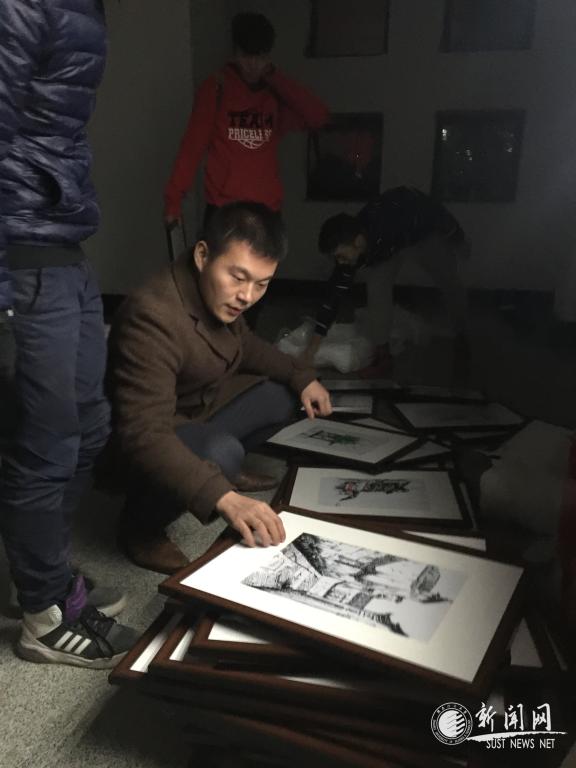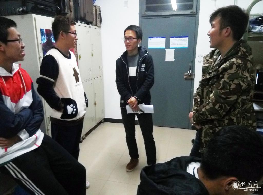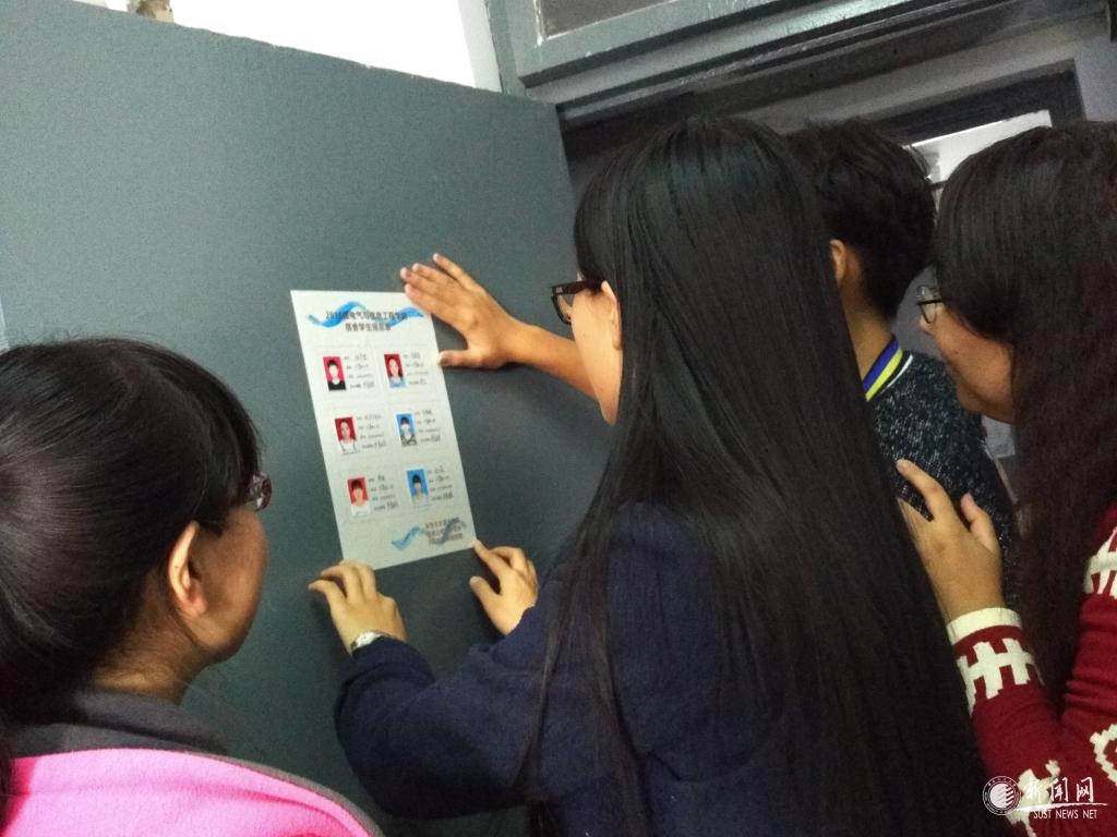 任歡老師(中)和學(xué)生一起張貼宿舍標(biāo)識