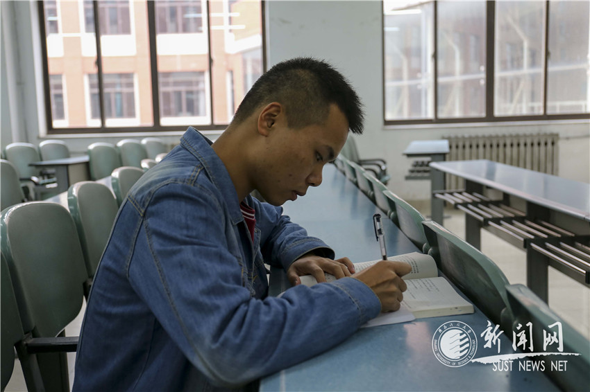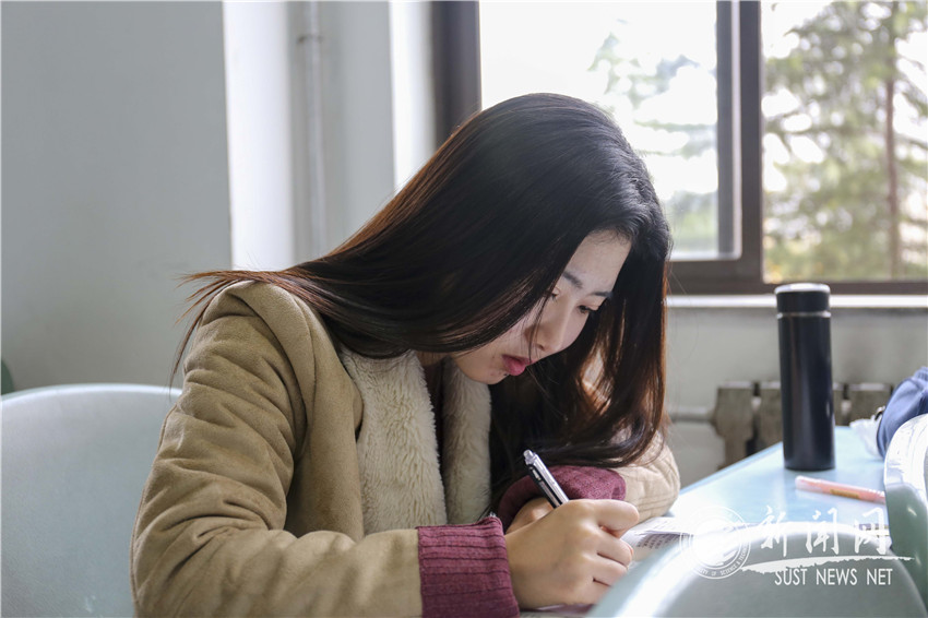 初冬周末的早晨,當(dāng)大多數(shù)學(xué)生在溫暖的被窩里睡覺(jué)的時(shí)候,“學(xué)霸”們?cè)缭缇蛠?lái)到教學(xué)樓自習(xí),楊金燦同學(xué)就是其中一位。