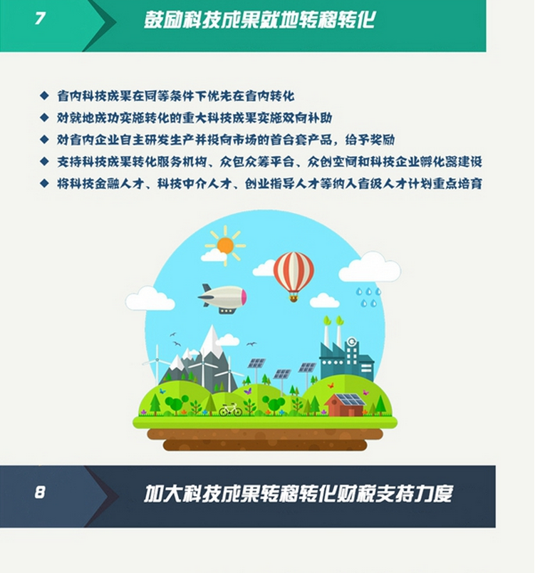 七、鼓勵(lì)科技成果就地轉(zhuǎn)移轉(zhuǎn)化。省內(nèi)科技成果在同等條件下優(yōu)先在省內(nèi)轉(zhuǎn)化 。對(duì)就地成功實(shí)施轉(zhuǎn)化的重大科技成果實(shí)施雙向補(bǔ)助,根據(jù)產(chǎn)業(yè)化規(guī)模和納稅總額,給予成果供給方和吸納方 總額合計(jì)30%、最高不超過(guò)150萬(wàn)元的后補(bǔ)助或貸款貼息。對(duì)省內(nèi)企業(yè)自主研發(fā)生產(chǎn)并投向市場(chǎng)的首臺(tái)套產(chǎn)品,按首臺(tái)套產(chǎn)品銷售價(jià)格的5%給予獎(jiǎng)勵(lì),最高不超過(guò)50萬(wàn)元。支持科技成果轉(zhuǎn)化服務(wù)機(jī)構(gòu)、眾包眾籌平臺(tái)、眾創(chuàng)空間和科技企業(yè)孵化器建設(shè),根據(jù)其業(yè)績(jī)給予獎(jiǎng)勵(lì)和后補(bǔ)助。將科技金融人才、科技中介人才、創(chuàng)業(yè)指導(dǎo)人才等納入省級(jí)人才計(jì)劃重點(diǎn)培育。