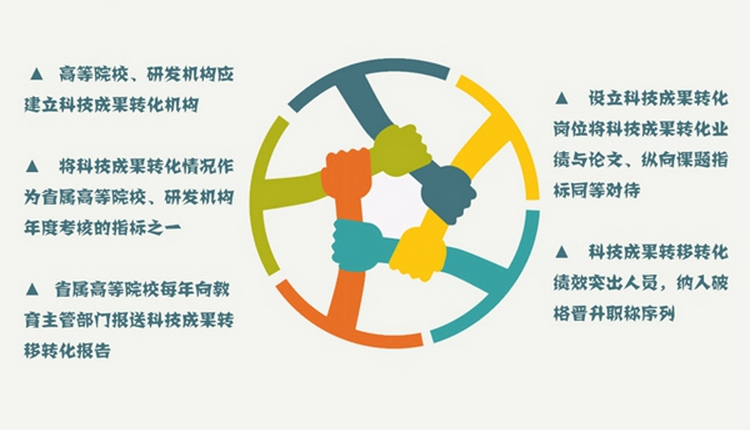 九、創(chuàng)新科技成果轉(zhuǎn)移轉(zhuǎn)化評(píng)價(jià)機(jī)制。高等院校、研發(fā)機(jī)構(gòu)應(yīng)建立科技成果轉(zhuǎn)化機(jī)構(gòu),設(shè)立科技成果轉(zhuǎn)化崗位。將科技成果轉(zhuǎn)化業(yè)績(jī)與論文、縱向課題指標(biāo)同等對(duì)待,科技成果轉(zhuǎn)移轉(zhuǎn)化績(jī)效突出人員,納入破格晉升職稱序列。將科技成果轉(zhuǎn)化情況作為省屬高等院校、研發(fā)機(jī)構(gòu)年度考核的指標(biāo)之一。省屬高等院校每年向教育主管部門報(bào)送科技成果轉(zhuǎn)移轉(zhuǎn)化報(bào)告,由教育主管部門統(tǒng)一報(bào)省政府,作為增加高等院校撥款的重要依據(jù)。