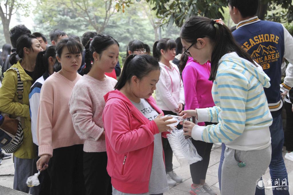 分鏡頭1:在測試場地門口,大三年級某班長正在給同學(xué)們分發(fā)測試肺活量的吹嘴。提到體能測試活動,他說,“大三年級的同學(xué)普遍比較重視這次體能測試,提前幾天就在操場進行練習(xí),當(dāng)天早上一大清早就換好運動裝,排隊來到測試地點,以便能夠取得好成績。”