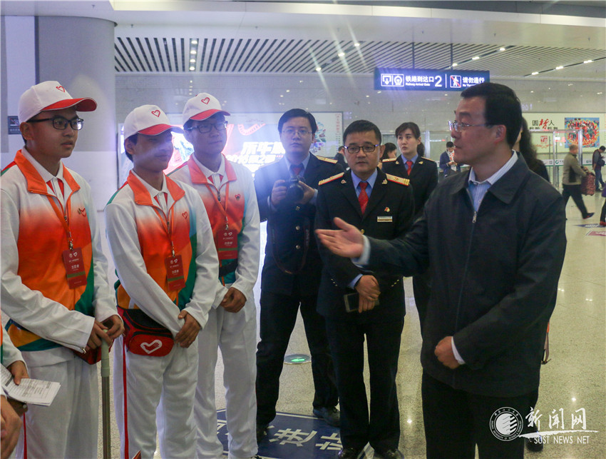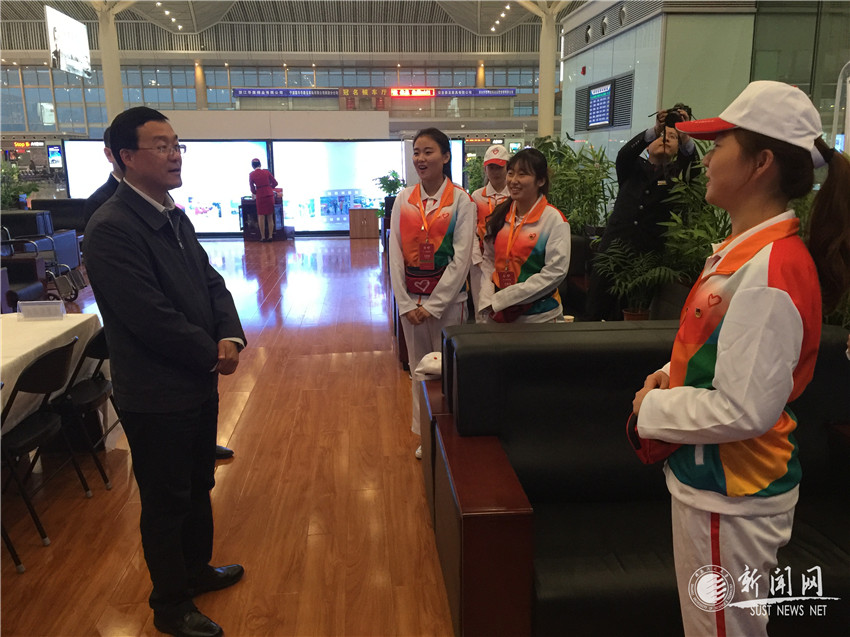 在第十一屆中國藝術(shù)節(jié)即將開幕之際,共青團(tuán)陜西省委書記、第十一屆中國藝術(shù)節(jié)陜西省工作指揮部志愿者工作部部長段小龍,陜西廣播電視臺副臺長、黨委副書記安平,共青團(tuán)陜西省委志愿者工作部副部長胡曉彤等一行于10月13日下午來到西安咸陽國際機場、西安北客站,慰問我校正在此地進(jìn)行現(xiàn)場服務(wù)的127名大學(xué)生志愿者。