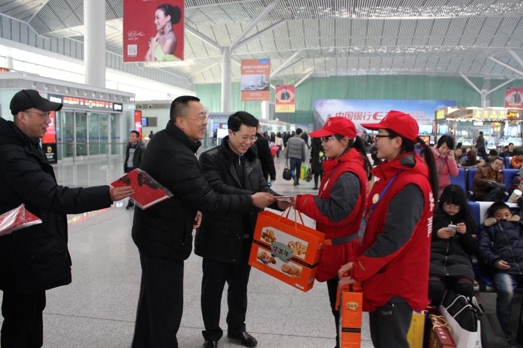 2月3日下午4時,團省委副書記單舒平、校黨委副書記溫鋒一行來到西安鐵路局西安北站,慰問在這里參加春運志愿服務的陜科大學子。自全國青年志愿服務春運——“暖冬行動”在西安北站啟動起,我校共組織60名在校大學生參加此次春運志愿服務。