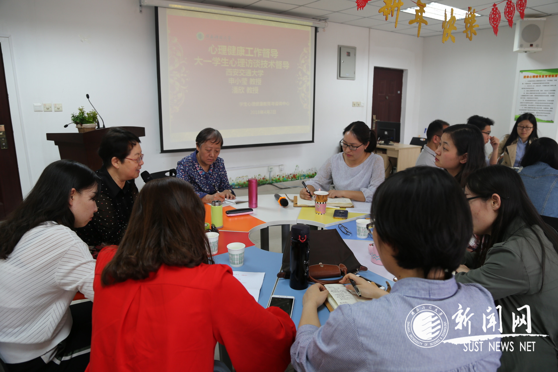 強(qiáng)化跟蹤反饋,開(kāi)展大一學(xué)生心理訪談技術(shù)督導(dǎo)。為落實(shí)2017級(jí)新生心理測(cè)評(píng)約談反饋及跟蹤干預(yù)工作,學(xué)工部心理中心于4月2日特邀西安交通大學(xué)申小瑩教授和潘欣教授舉行2017級(jí)新生心理訪談技術(shù)督導(dǎo)。中心全體教師、各院心理專項(xiàng)輔導(dǎo)員及2017級(jí)全體輔導(dǎo)員共計(jì)30余人參加。