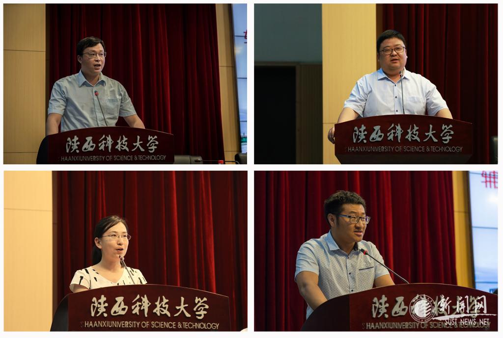 我校本屆備賽團(tuán)隊(duì)代表李萌(左上)、李鵬(右上)及獲獎(jiǎng)選手王雪婧(左下)、張欽峰(右下)分別發(fā)言