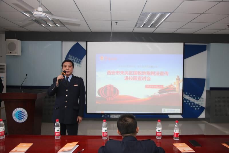 為進一步提升大學生對創(chuàng)業(yè)稅收政策的理解和認識,促進大學生就業(yè)創(chuàng)業(yè)的積極性。4月13日上午,學工部、財務處攜手西安市未央區(qū)地稅局國稅局,在四號教學樓C411報告廳為在校學生舉辦了“優(yōu)化稅收營商環(huán)境,助力經濟高質量發(fā)展”稅收優(yōu)惠政策宣講會。地稅局副局長楊興、國稅局和地稅局工作人員,學工部、財務處相關人員及百余名有創(chuàng)業(yè)意愿的學生參加會議。