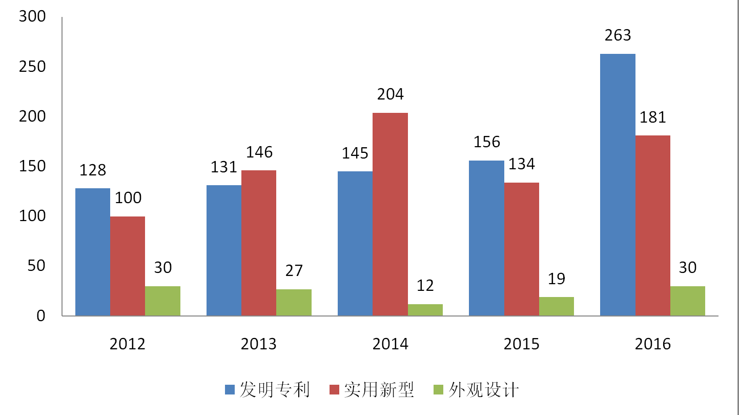2012-2016年我校研究生中國專利授權(quán)統(tǒng)計(jì)圖