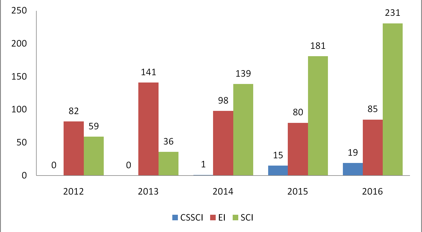 2012-2016年我校研究生高水平成果趨勢(shì)圖