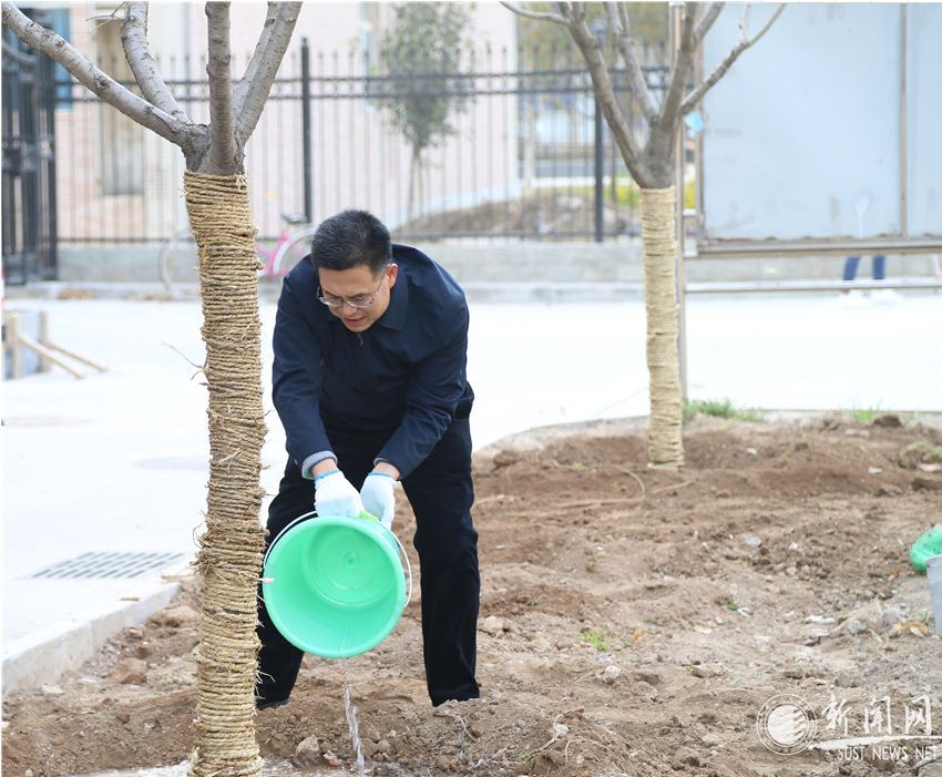 揮鍬鏟土、挖坑扶苗、填土壓實(shí)、圍堰澆水……3月16日早上8時(shí)許,沁園社區(qū)東側(cè)道路旁的植樹(shù)區(qū)一片忙碌,校領(lǐng)導(dǎo)馬建中、楊欲曉、郭霄鵬、王學(xué)川、蔡煜東、王樹(shù)茂、徐曉峰及教職員工幾人一組,精神飽滿、有條不紊地認(rèn)真忙碌著,不一會(huì)兒的工夫,15株新栽的櫻花樹(shù)苗便亭亭玉立在了早春的晨曦中,成為一道亮麗的風(fēng)景線。此次植樹(shù)節(jié)活動(dòng)以“喜迎校慶 愛(ài)護(hù)環(huán)境 播種綠色”為主題,自3月3日啟動(dòng)以來(lái),校領(lǐng)導(dǎo)帶頭植綠,全校師生、社區(qū)居民志愿者400余人積極報(bào)名參與。