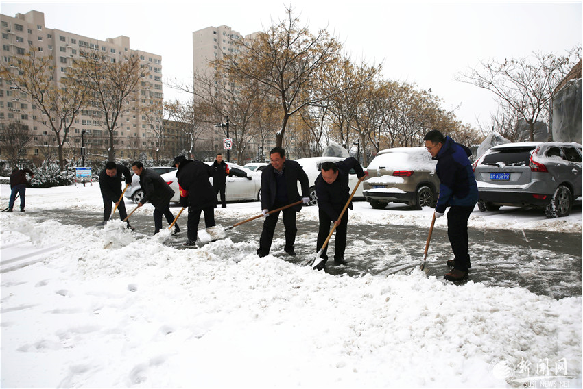 1月3日,西安迎來(lái)2018新年以來(lái)的第一場(chǎng)大雪,短短一夜間,一場(chǎng)大雪裝扮下的校園顯出別樣美麗,清早出行的師生們發(fā)現(xiàn):大雪凍住的是銀裝素裹的美景,凍不住的卻是我們的道路——我校及時(shí)啟動(dòng)惡劣天氣應(yīng)急預(yù)案,全校各單位集體出動(dòng)掃雪,確保道路暢通和廣大師生出行平安。1月4日上午9時(shí)許,校黨委書(shū)記姚書(shū)志、校長(zhǎng)馬建中、校黨委副書(shū)記王道安、紀(jì)委書(shū)記王樹(shù)茂、副校長(zhǎng)李志健等校領(lǐng)導(dǎo)紛紛來(lái)到逸夫樓前,帶領(lǐng)各職能部門(mén)和后勤集團(tuán)同志一起,拿起鐵鍬、掃把等工具對(duì)樓前行人、車輛通道的積雪進(jìn)行清掃。校園內(nèi)的各處主干道上處處可見(jiàn)師生們忙碌鏟雪掃雪的身影,用勞動(dòng)和愛(ài)心為廣大師生的出行提供便利。
