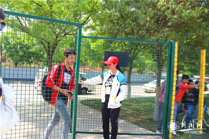 志愿者分為16組,共計(jì)100多人,戴著顯眼的小紅帽,他們主要協(xié)助裁判、參賽成員、賽場秩序搬運(yùn)比賽用的器材、管制賽場流程、幫忙檢錄、恢復(fù)場地等,跑道上的志愿者還要為運(yùn)動(dòng)員們驅(qū)散跑道上的人員。在標(biāo)準(zhǔn)田徑場的南門默默站立著一位小姑娘,她的責(zé)任就是為同學(xué)開關(guān)門??此菩⌒〉呐e動(dòng),但在烈日炎炎下,能堅(jiān)持下來的,也只有像她一樣的志愿者了吧。