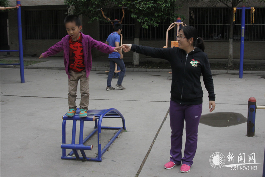 校園一角,一位年輕媽媽帶著孩子在運動器材上玩耍。從小到大,我們就像這樣在母親的關(guān)懷中長大,母愛一直陪伴著我們,不是嗎?