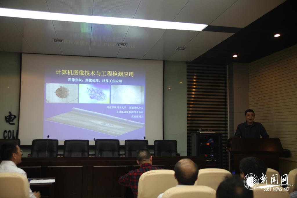 5月7日上午,校友們一行參觀了校史館,回憶西遷歷史、師生情誼、學習時光、實驗課題、學生活動等,在多個展板前駐足交談、拍照留念,追憶校園變遷,重溫同窗記憶。當天下午, 78級實驗技術(shù)專修班杰出校友的代表之一,美國德克薩斯州立大學交通研究中心高級研究員黃亞雄博士,應邀為電信學院師生開展了主題為“計算機圖像技術(shù)與工程檢測應用”的報告會。期間,黃亞雄表達了自己作為昔日學子對母校和學院的感恩和懷念之情,表示愿為母校的發(fā)展盡己所能、貢獻更多力量的強烈愿望。