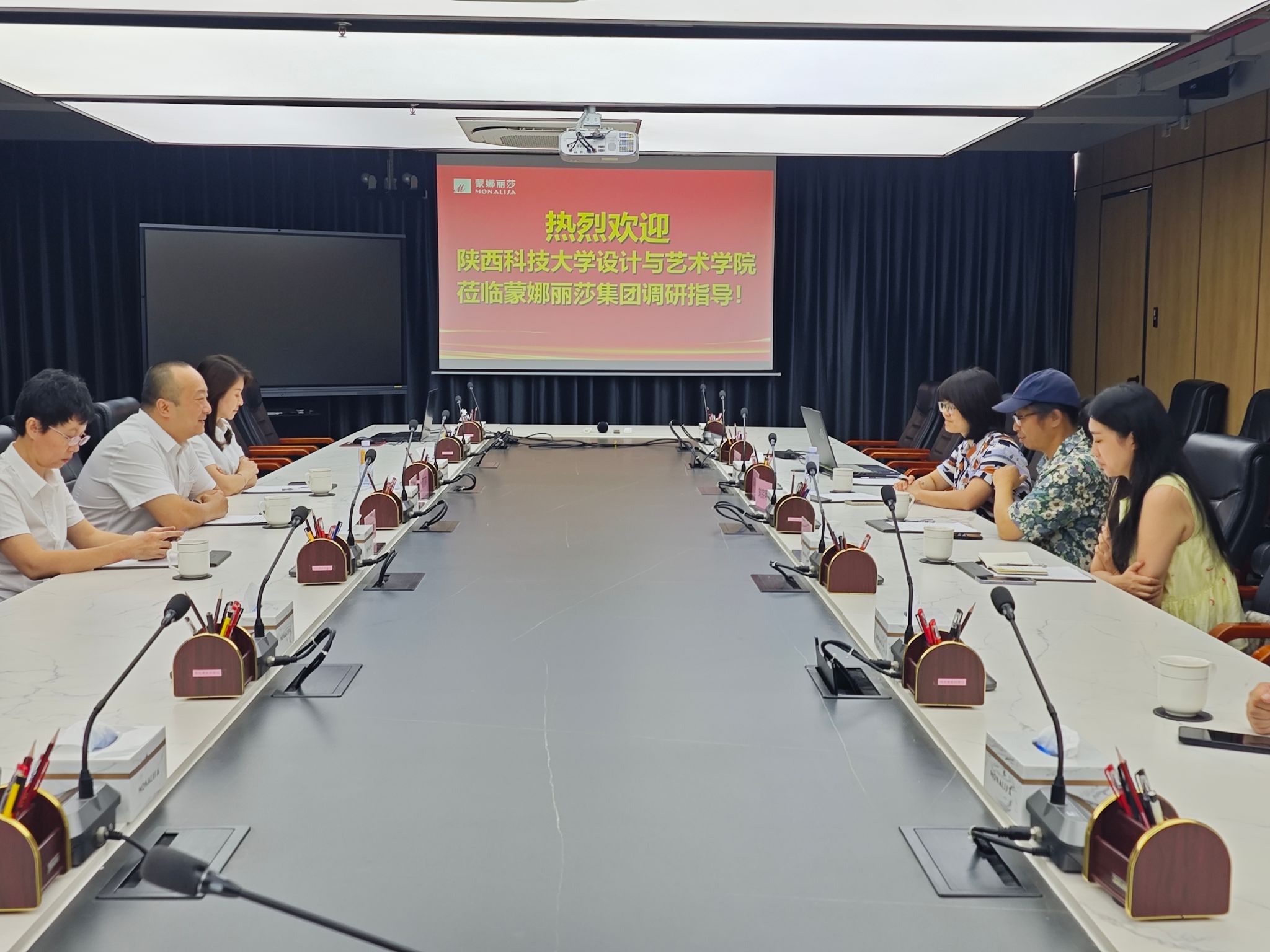 在佛山,學(xué)院一行參觀蒙娜麗莎研究院,與蒙娜麗莎集團(tuán)研發(fā)中心副總經(jīng)理趙勇等就環(huán)境設(shè)計(jì)定制班建設(shè)、設(shè)計(jì)專博和博士后流動(dòng)站高層次人才與科研項(xiàng)目合作、學(xué)生實(shí)習(xí)與畢業(yè)生招聘等進(jìn)行座談,并達(dá)成初步合作意向。