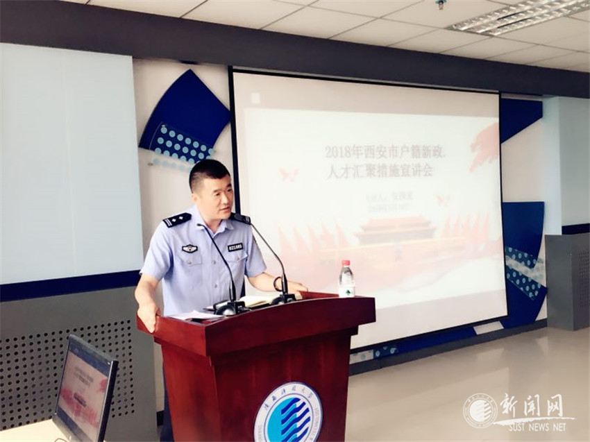 為幫助畢業(yè)生深入了解西安市人才政策,助力“百萬(wàn)大學(xué)生留西安”計(jì)劃,5月18日上午,我校學(xué)生就業(yè)指導(dǎo)中心、保衛(wèi)處邀請(qǐng)西安市公安局未央分局和草灘派出所,在4號(hào)教學(xué)樓C411報(bào)告廳舉辦 “西安市戶(hù)籍新政人才匯聚措施”政策宣講會(huì)。西安市公安局未央分局戶(hù)政大隊(duì)大隊(duì)長(zhǎng)王海玲、草灘派出所主管戶(hù)籍工作副所長(zhǎng)安四龍及派出所相關(guān)工作人員,學(xué)生就業(yè)指導(dǎo)中心、保衛(wèi)處相關(guān)人員,各學(xué)院畢業(yè)班輔導(dǎo)員及百余名學(xué)生代表參加會(huì)議。會(huì)議由保衛(wèi)處處長(zhǎng)助理劉政主持。