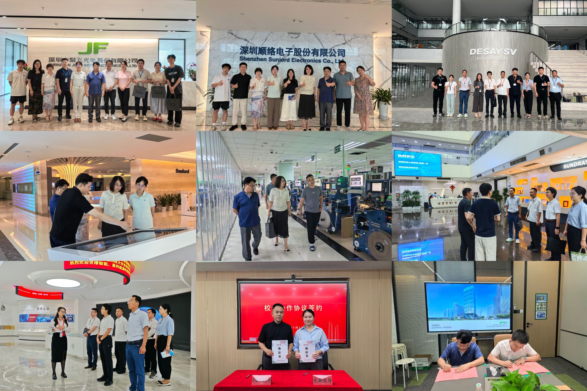 在拓展校企合作與產(chǎn)業(yè)調(diào)研方面,團(tuán)隊(duì)圍繞新型顯示技術(shù)、集成電路、半導(dǎo)體、汽車(chē)電子等領(lǐng)域,實(shí)地考察了包括深圳市兆馳股份有限公司、深圳和美精藝半導(dǎo)體科技股份有限公司、勝科納米(深圳)有限公司、深圳順絡(luò)電子股份有限公司、深圳聚飛光電股份有限公司、德賽西威汽車(chē)電子股份有限公司、廣東利元亨智能裝備股份有限公司、信銳網(wǎng)科技術(shù)有限公司、中南國(guó)際科技發(fā)展(深圳)有限公司、深圳市圖興科技有限公司等16家企業(yè)。通過(guò)參觀企業(yè)展廳、生產(chǎn)線(xiàn),聽(tīng)取企業(yè)介紹,團(tuán)隊(duì)深入了解了行業(yè)發(fā)展趨勢(shì)、技術(shù)前沿動(dòng)態(tài)及具體崗位能力需求。校企雙方圍繞提升人才培養(yǎng)精準(zhǔn)度,就課程體系優(yōu)化、實(shí)踐教學(xué)強(qiáng)化、實(shí)習(xí)就業(yè)基地共建、定向崗位開(kāi)拓等議題展開(kāi)了務(wù)實(shí)討論,旨在將產(chǎn)業(yè)需求融入培養(yǎng)方案,提升學(xué)生就業(yè)競(jìng)爭(zhēng)力。