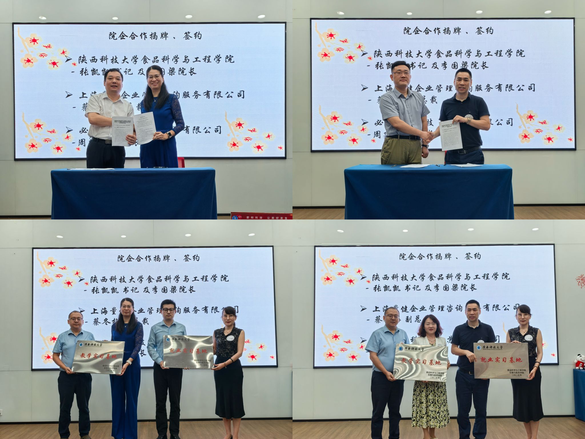 會議期間,食品學(xué)院與上海量健企業(yè)管理咨詢服務(wù)有限公司、必優(yōu)食品科技(江蘇)有限公司舉行了院企合作簽約及授牌儀式,就共建高水平科研平臺、攜手校企聯(lián)合人才培養(yǎng)、暢通成果轉(zhuǎn)化機(jī)制等建立深度合作關(guān)系。
