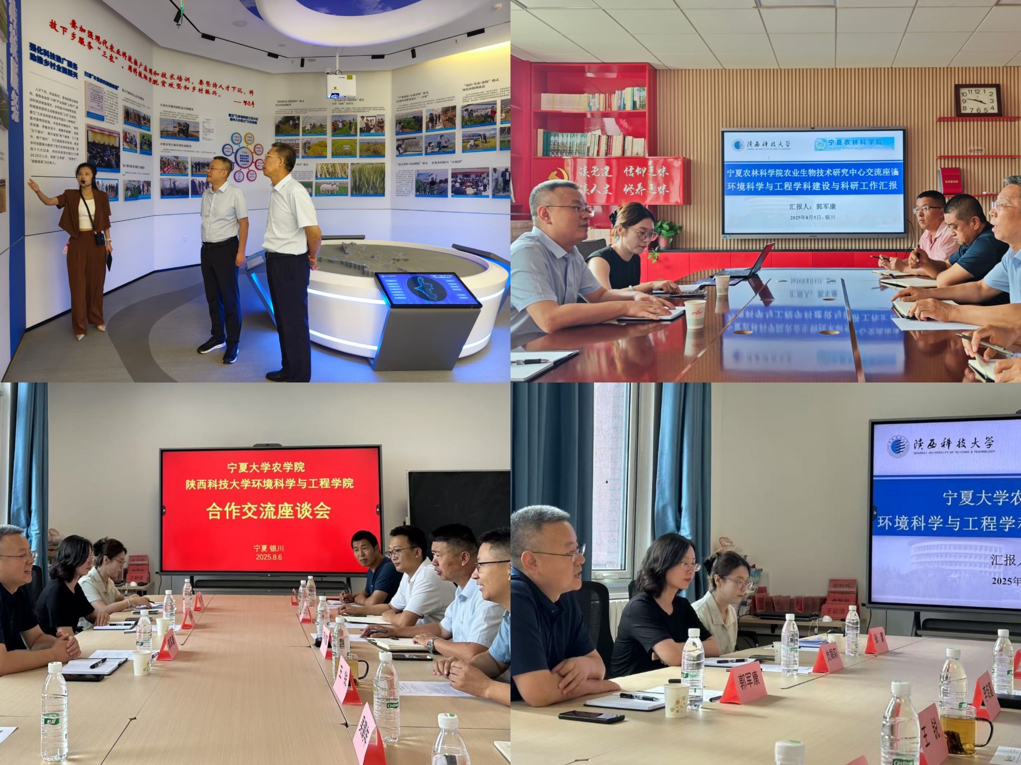 郭軍康一行先后走訪了寧夏農(nóng)林科學(xué)院農(nóng)業(yè)生物技術(shù)研究中心與寧夏大學(xué)農(nóng)學(xué)院,參觀了院史館及科研實驗平臺,詳細(xì)介紹了我校辦學(xué)歷史,學(xué)院的基本情況以及近年來在人才培養(yǎng)、科學(xué)研究、學(xué)科建設(shè)等方面取得的成績。雙方將圍繞鹽堿地生態(tài)修復(fù)、農(nóng)業(yè)廢棄物資源化新技術(shù)、特色農(nóng)產(chǎn)品產(chǎn)地環(huán)境安全等領(lǐng)域,在科研平臺共建、區(qū)域科技項目申報、成果轉(zhuǎn)化推廣、人才聯(lián)合培養(yǎng)等方面開展深度合作。