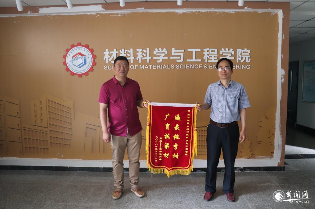 為了表達對材料學院的感恩與留戀,校友們將一面“遍載桃李樹、廣育棟梁材”的錦旗贈予學院,祝愿學院在學科發(fā)展、人才培養(yǎng)等方面再創(chuàng)新的輝煌。