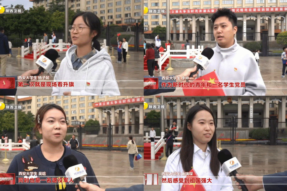 10月1日,為慶祝中華人民共和國(guó)成立76周年,陜西科技大學(xué)西部設(shè)計(jì)黨支部黨員代表們前往陜西省人民政府新城廣場(chǎng)觀看升旗儀式。晨曦微露,秋雨初歇,新城廣場(chǎng)上人群肅立,支部黨員與各界群眾共同等候莊嚴(yán)時(shí)刻。八時(shí)三十分,國(guó)旗護(hù)衛(wèi)隊(duì)步伐鏗鏘,護(hù)送五星紅旗步入廣場(chǎng)。激昂的國(guó)歌奏響,紅旗在雨后澄澈的碧空下冉冉升起。成群和平鴿環(huán)繞國(guó)旗翱翔,羽翼劃出優(yōu)美弧線,眾人齊聲高唱國(guó)歌,把對(duì)祖國(guó)的摯愛(ài)融入鏗鏘旋律。