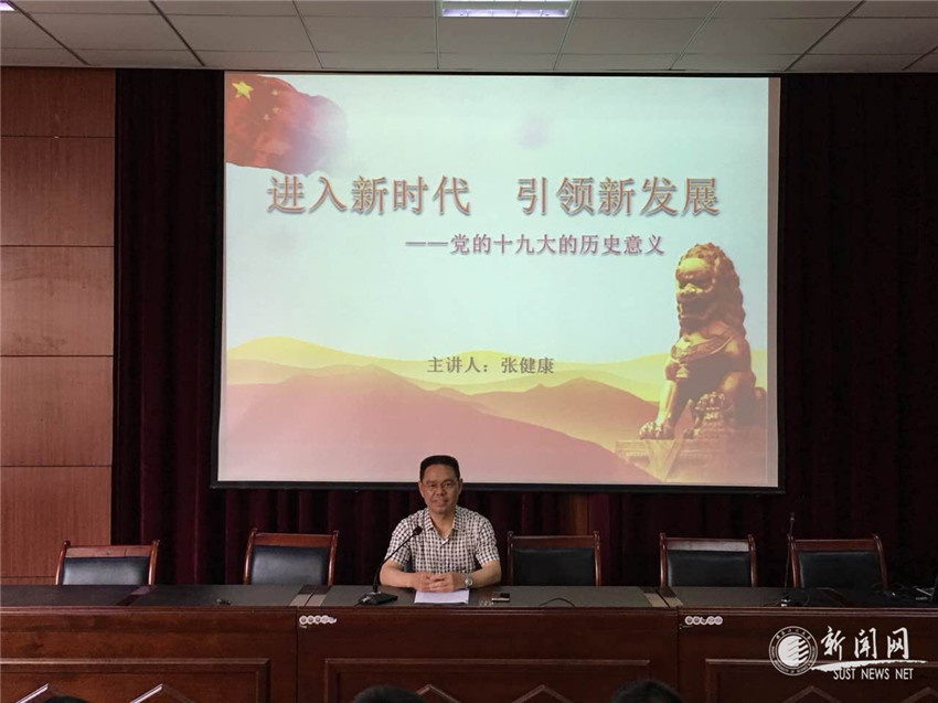 6月14日上午,張健康在西二樓報(bào)告廳為教工第一黨支部全體黨員上了一堂題為“進(jìn)入新時(shí)代、引領(lǐng)新發(fā)展”的黨課。張健康結(jié)合自身學(xué)習(xí)黨的十九大精神的認(rèn)識(shí)和體會(huì),全面準(zhǔn)確的闡述了黨的十九大的重大歷史意義,幫助黨員同志進(jìn)一步深入領(lǐng)會(huì)了十九大精神。