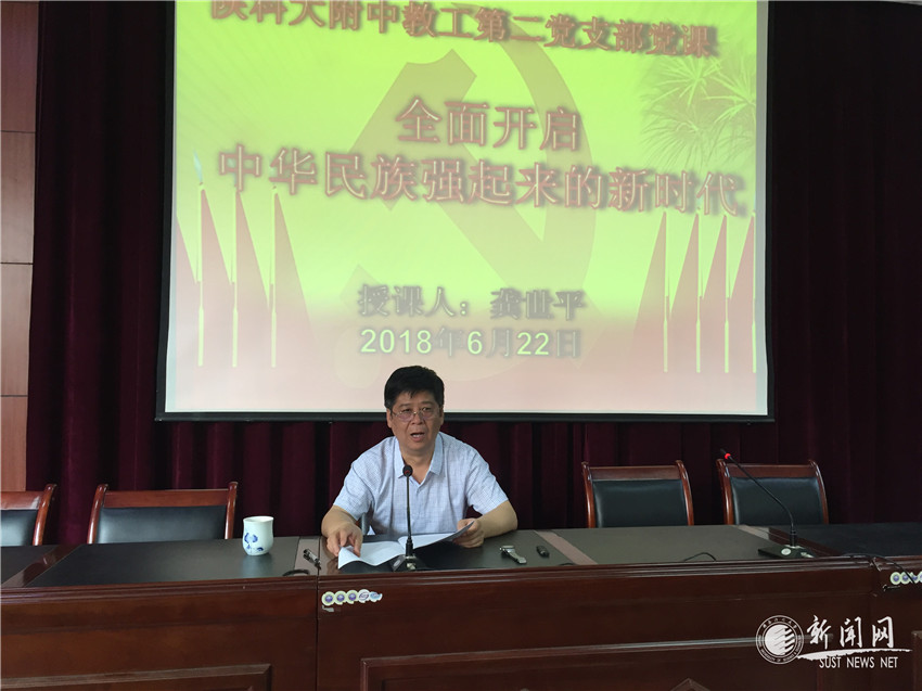 6月22日上午,龔世平在西二樓報(bào)告廳為教工第二黨支部全體黨員上了一堂題為“全面開啟中華民族強(qiáng)起來的新時(shí)代”的黨課。龔世平強(qiáng)調(diào),不忘初心,方得始終,全體教師黨員要恪守政治紀(jì)律、政治規(guī)矩,做講政治的表率;全面培育學(xué)生核心素養(yǎng),做教書育人的先鋒;嚴(yán)守師德底線,做廉潔從教的模范;要以高尚的品德、良好的心態(tài)、扎實(shí)的作風(fēng)認(rèn)真做好本職工作。