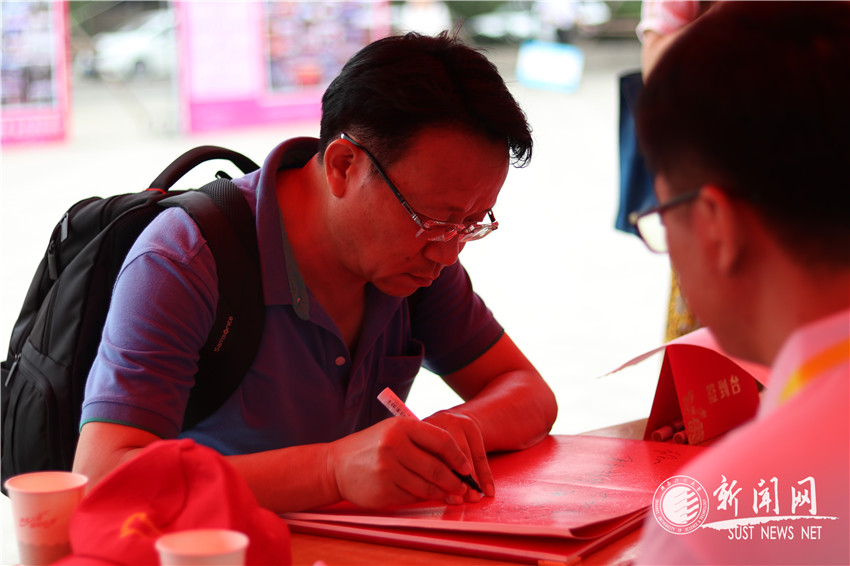 校友們在紅色簽到本上莊嚴(yán)地寫下自己的姓名以及對母校的祝福,激動地回憶著在校期間的青蔥歲月,也驚嘆于學(xué)院及母校的蓬勃發(fā)展,言語間訴說的都是對材料學(xué)院的深情,唇齒間流蕩的皆是對母校的祝福。白發(fā)蒼蒼、耄耋之年的老校友,在此時、在科大,臉上也洋溢著青春的色彩,談笑間燦若芳華。