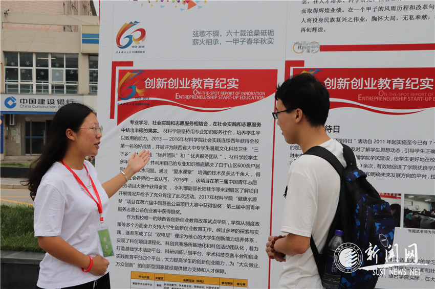 25日下午,校友們在沁園廣場參觀了以“感恩科大”為主題的材料學(xué)院科技創(chuàng)新成果展,校友們詳細了解了學(xué)院近年來在“挑戰(zhàn)杯”“互聯(lián)網(wǎng)+”比賽等大學(xué)生科技創(chuàng)新以及志愿服務(wù)和社會實踐等方面取得的豐碩成果,對學(xué)院科技創(chuàng)新取得的成績表示由衷的贊嘆,并提出了共享發(fā)展的建議和意見,部分校友還就科研成果轉(zhuǎn)化、設(shè)立科技創(chuàng)新獎學(xué)金與相關(guān)老師進行了深入的溝通。